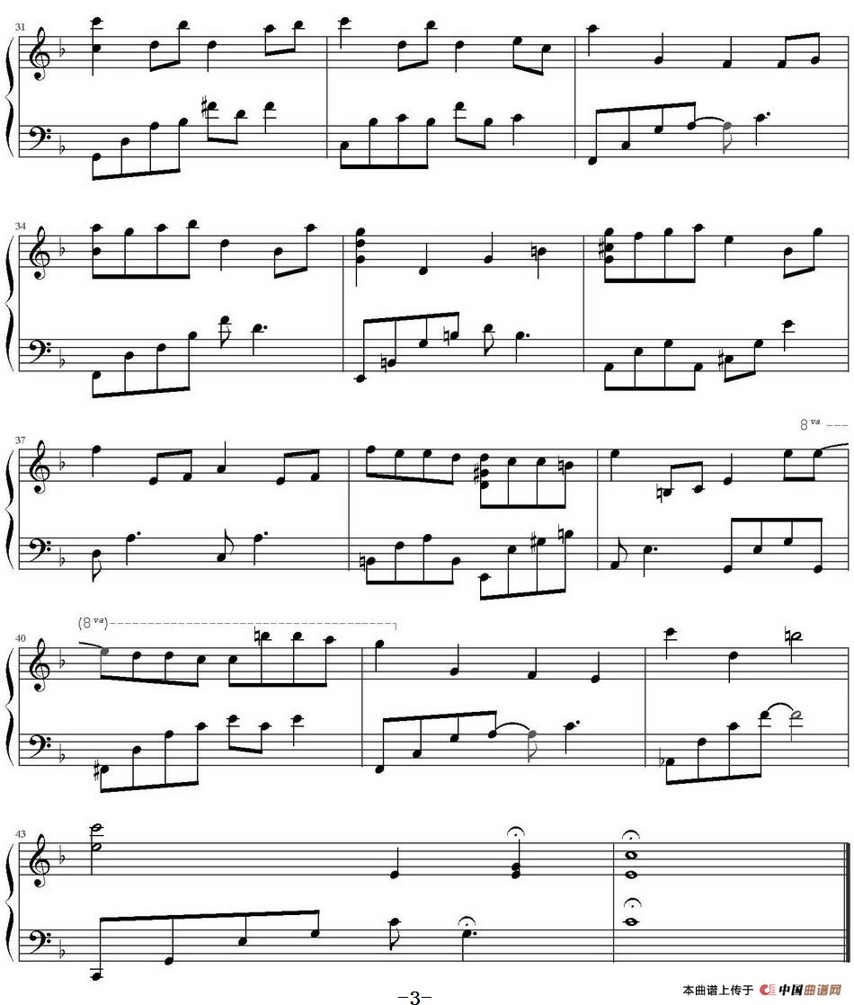 提示:在曲谱图片上单击右键,选择“图片另存为...”即可将曲谱保存到您的电脑中,打印时候可将图片插入到WORD中,调整合适大小打印即可。