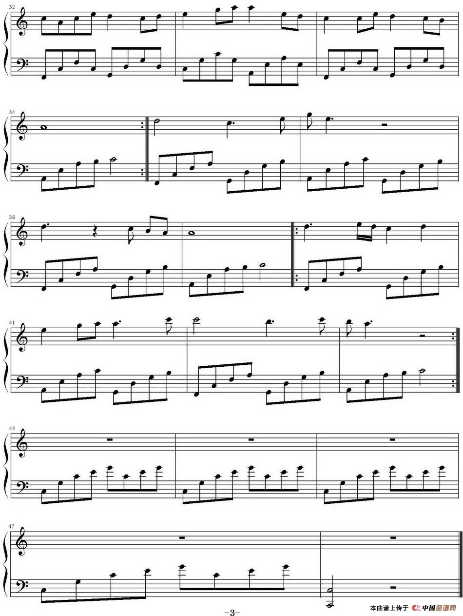 提示:在曲谱图片上单击右键,选择“图片另存为...”即可将曲谱保存到您的电脑中,打印时候可将图片插入到WORD中,调整合适大小打印即可。