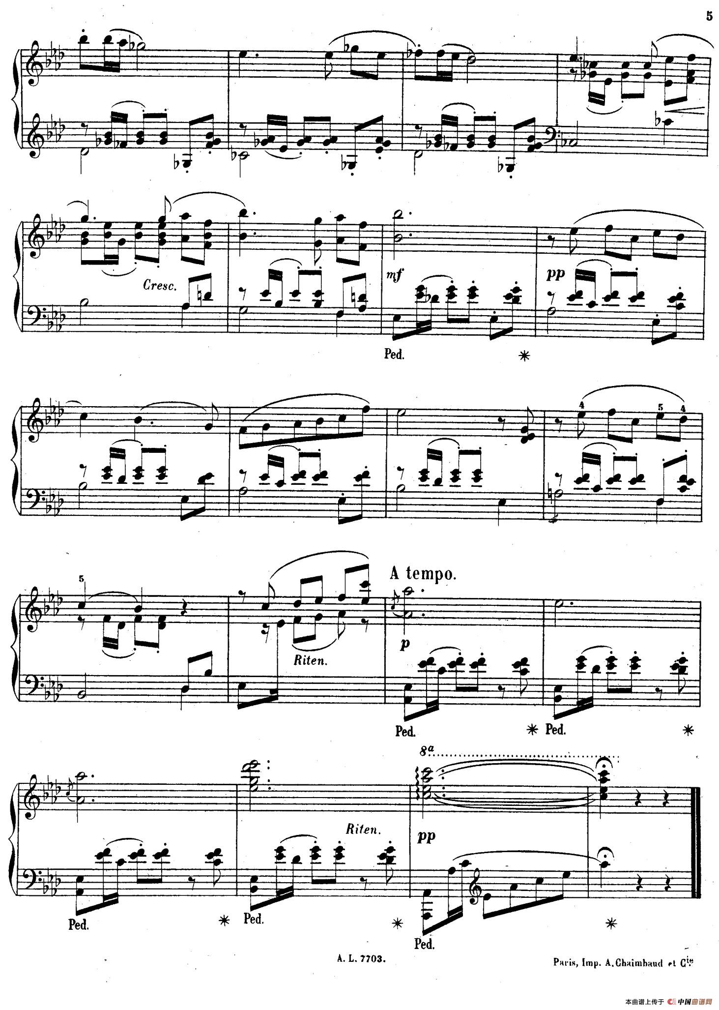 作曲:加布里埃尔·皮尔纳 来源:《中国曲谱网》 上传:车里子