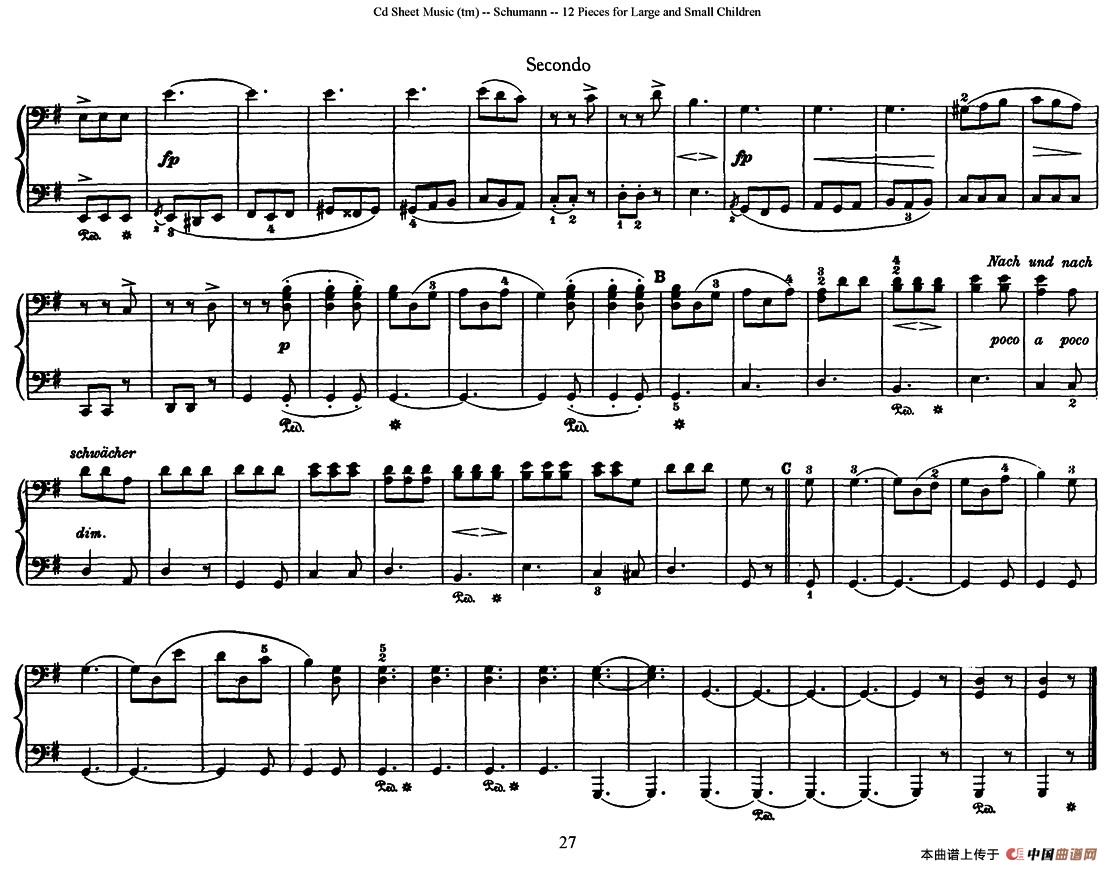 乐曲名:41.12首为孩子们而作的四手联弹曲 Op.85, Schumann - 12 Pieces for Large and Small Children Op.85 - Quatre Mains 四手联弹
