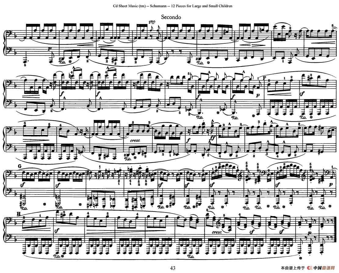 乐曲名:41.12首为孩子们而作的四手联弹曲 Op.85, Schumann - 12 Pieces for Large and Small Children Op.85 - Quatre Mains 四手联弹
