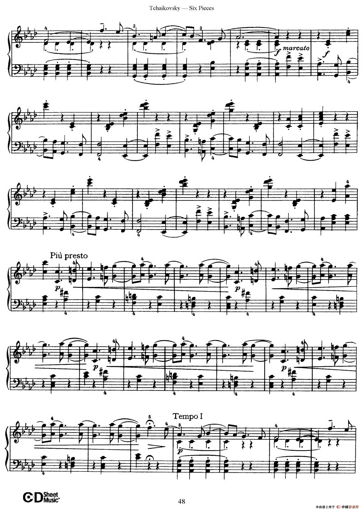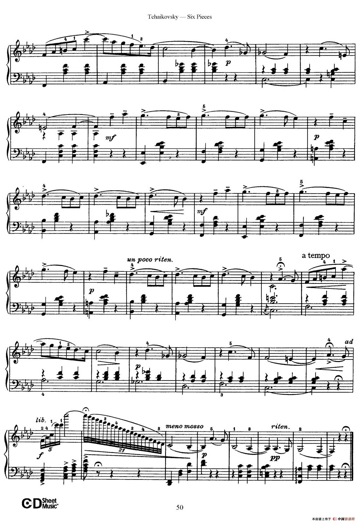 乐曲名:26.6首小品 Six Pieces Op.51, Tchaikowsky - Six Pieces Op.51
