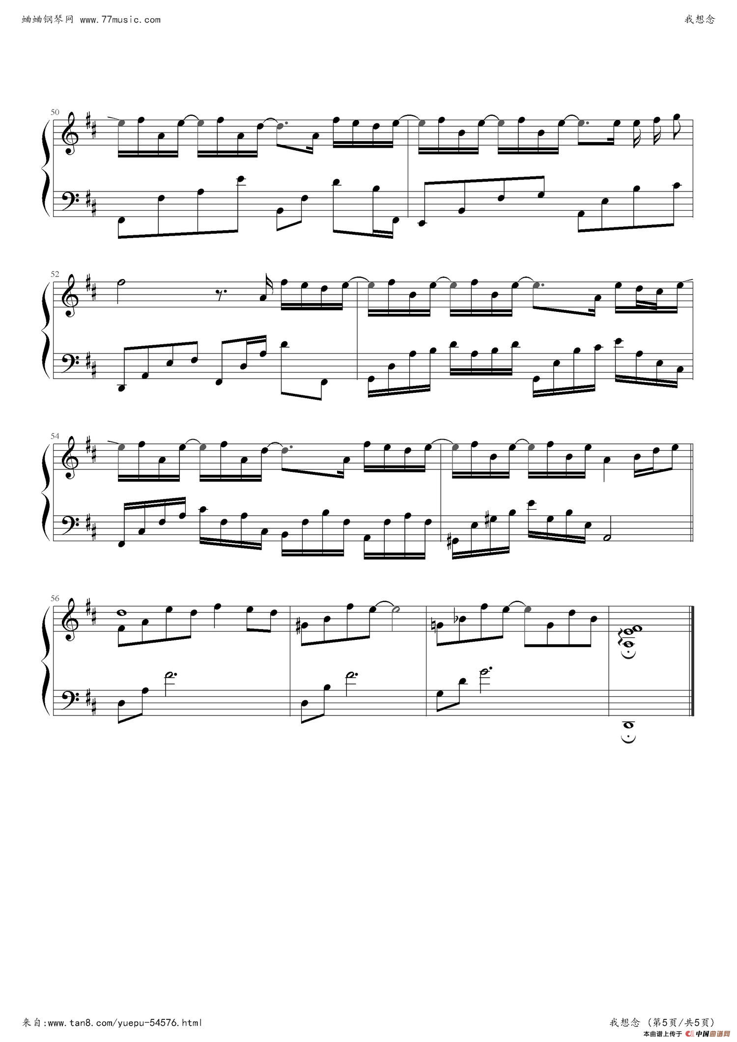 关于《我想念》曲谱的评论