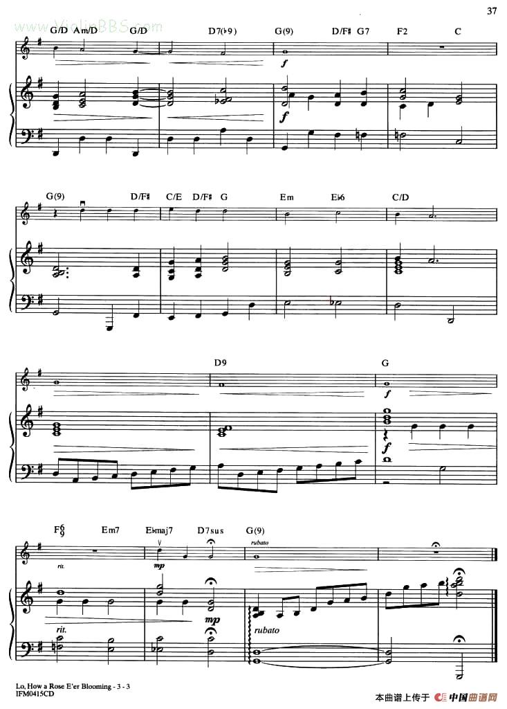 LO,HOW A ROSE E'ER BLOOMING(钢琴伴奏)