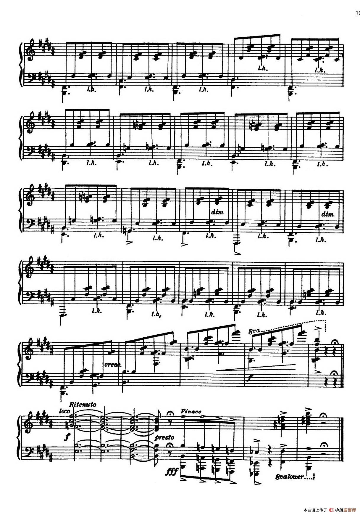 3. 阿尔汉布拉宫 Alhambra ,B大调,3/4拍,活泼的。经过慢板的和弦之后,进入中段的快板。接着重现开头的部分至结束。