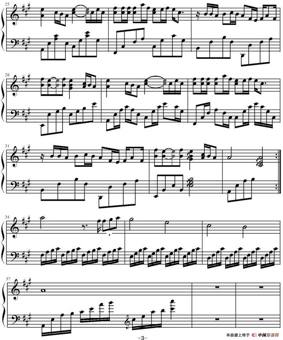提示:在曲谱图片上单击右键,选择“图片另存为...”即可将曲谱保存到您的电脑中,打印时候可将图片插入到WORD中,调整合适大小打印即可。
