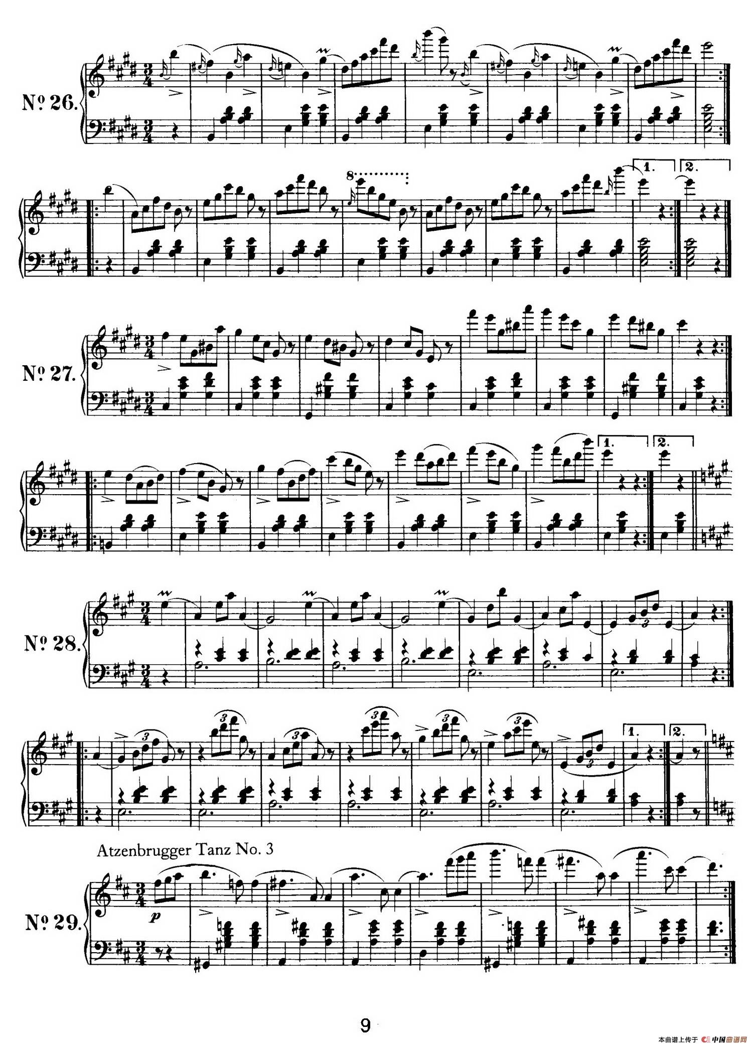 乐曲名:07.36首原创舞曲集 36 Original Dances Op.9, Schubert - 36 Original Dances (First Waltzes) D.365