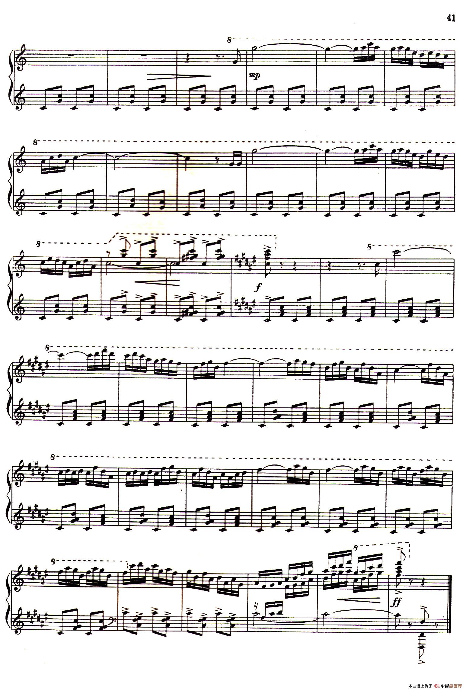 选自钢琴独奏《中国舞剧“鱼美人”选曲》(人民音乐出版社,1982年出版),吴祖强 杜鸣心作曲。全书共选取了三幕四场舞剧音乐的主要舞蹈音乐的钢琴改编曲。共15首