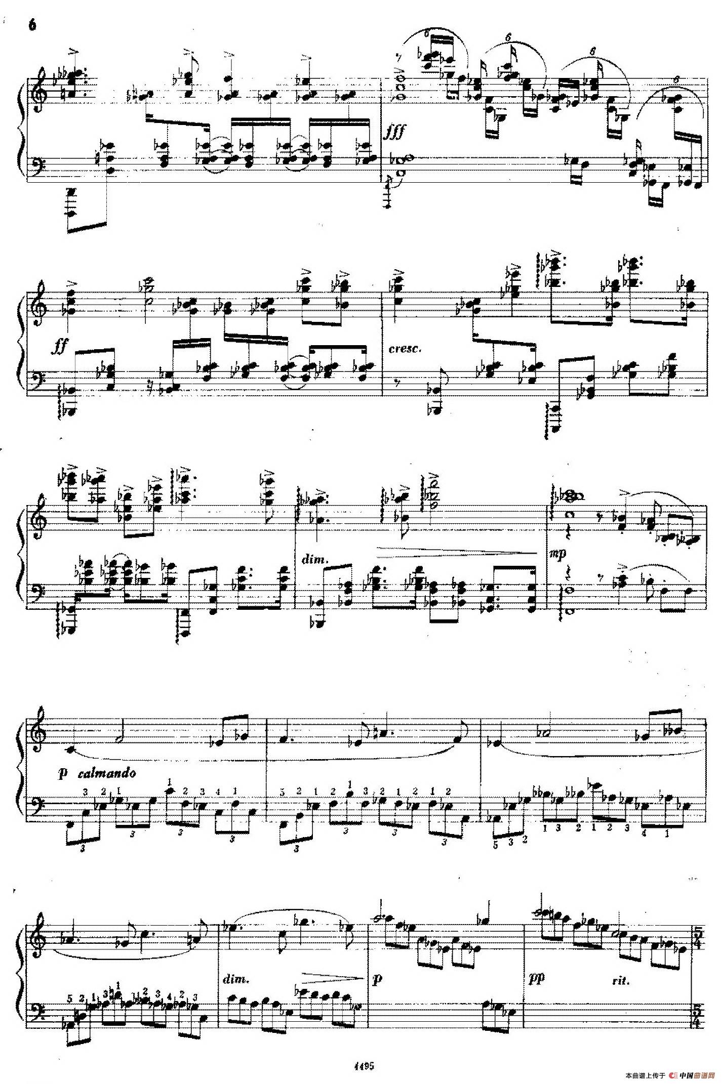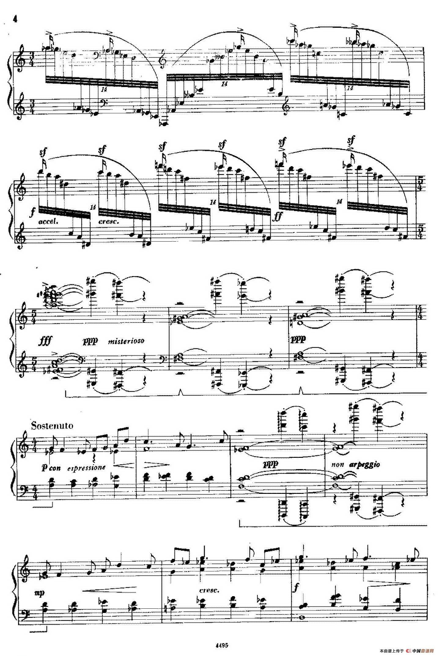 此曲开始是一段神秘、飘渺的引子,不久便带入轻盈、极富诗意的「正部」,经过一段略为激动的过渡后,便到了沉思、略带哲学味的「副部」,在再现部时,音乐性质起了极大改变,主部变为热情激动,副部则更为幽思,尾声用了与引子过渡相同的材料,令到全曲更紧密地统一起来,乃是一首既富予表现性又有严谨结构的艺术品。