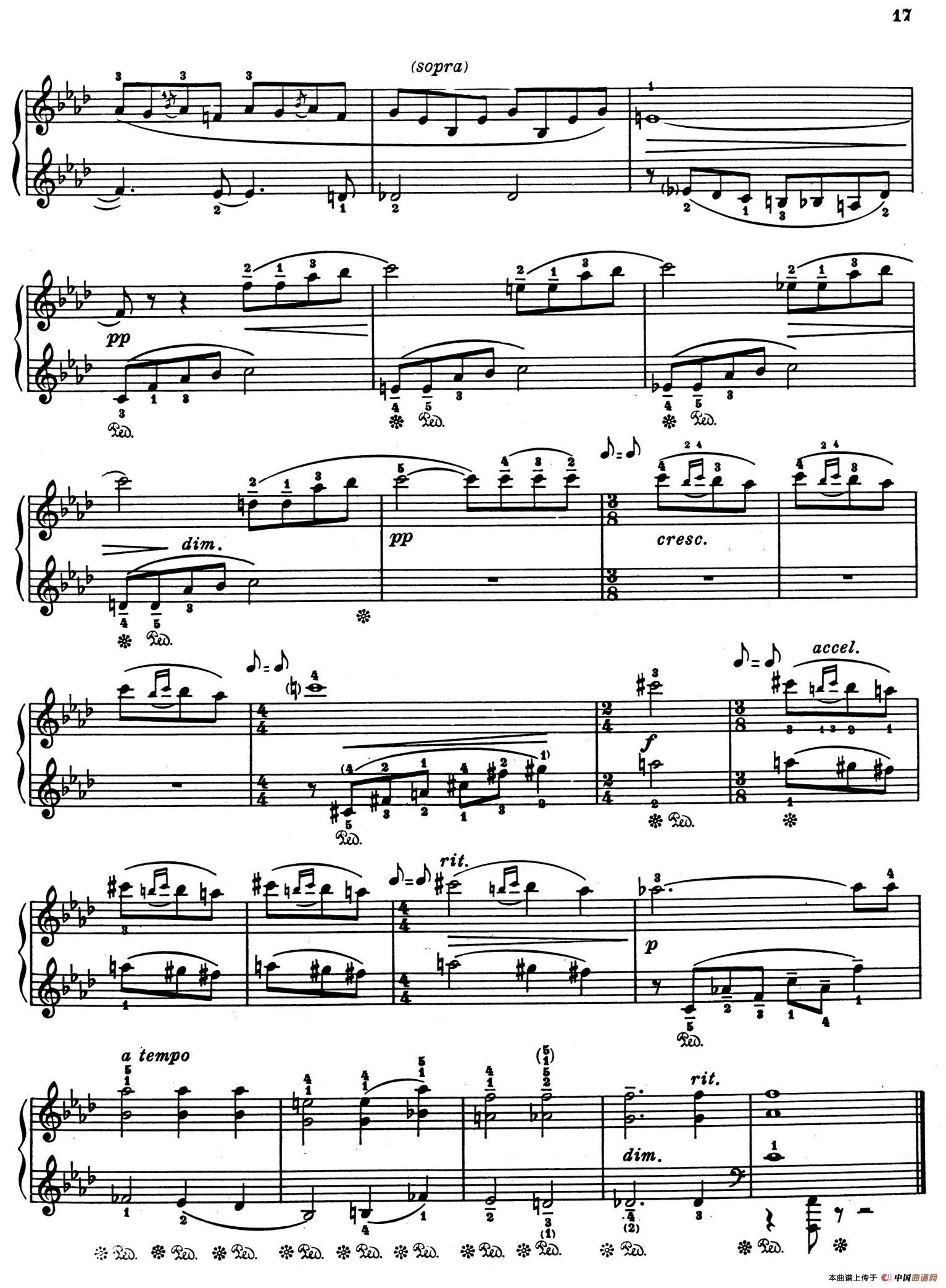 7. 二部创意曲 Invenzione ,作于1942年,f小调,4/4拍,非常自由而有表情的柔板。改编自舞剧《加雅涅》的一首柔板音乐。