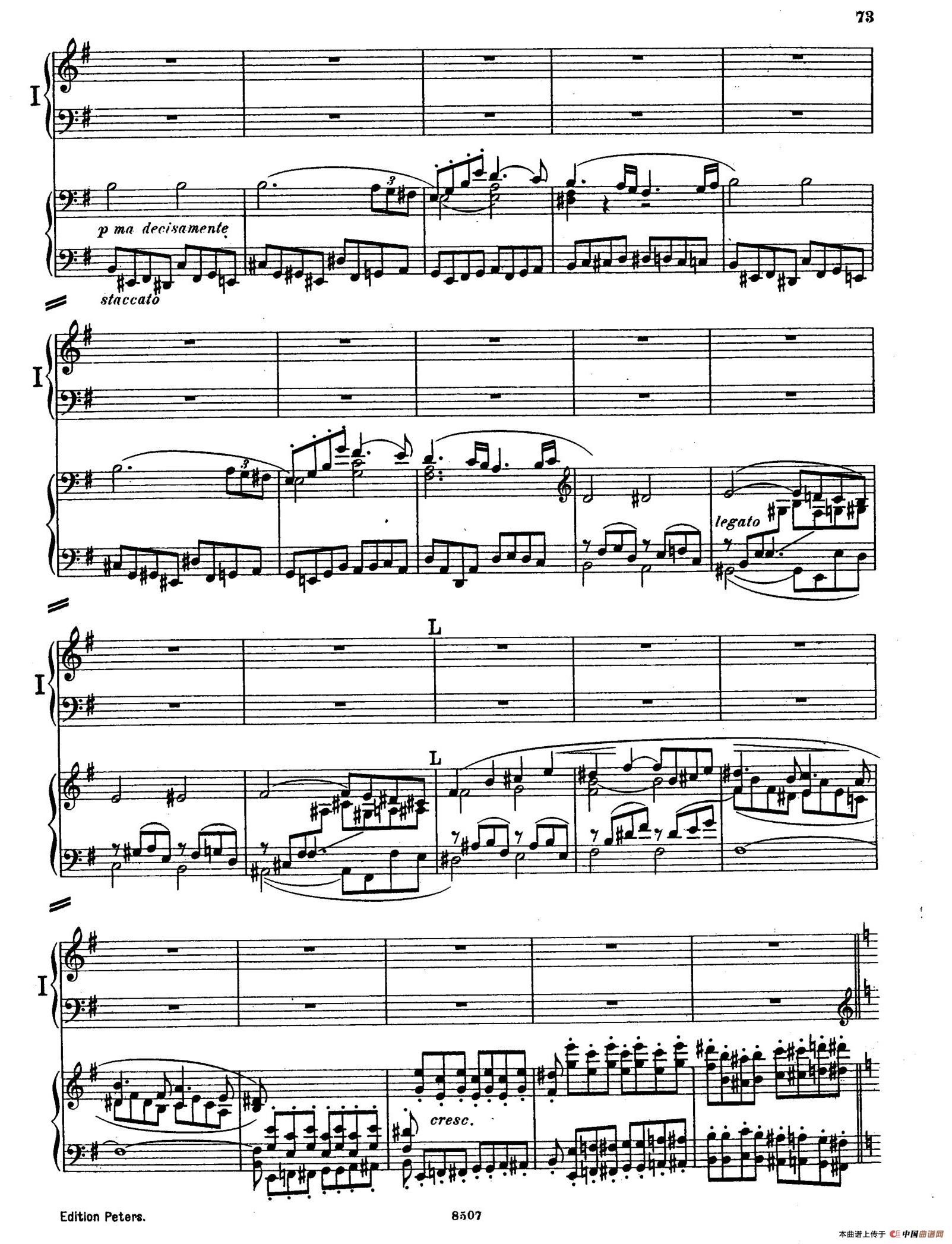 第四乐章,E大调,2/2拍,快板。