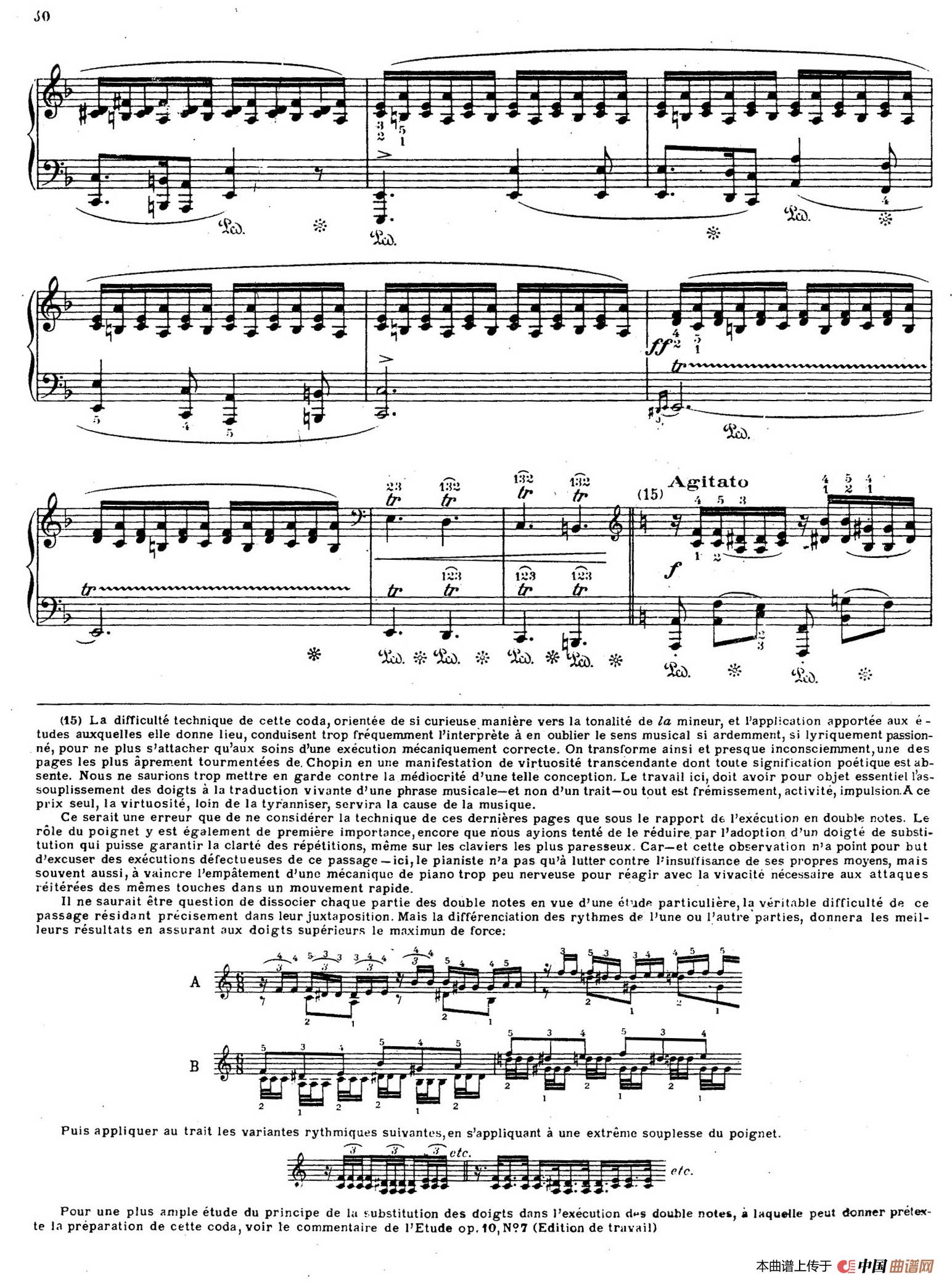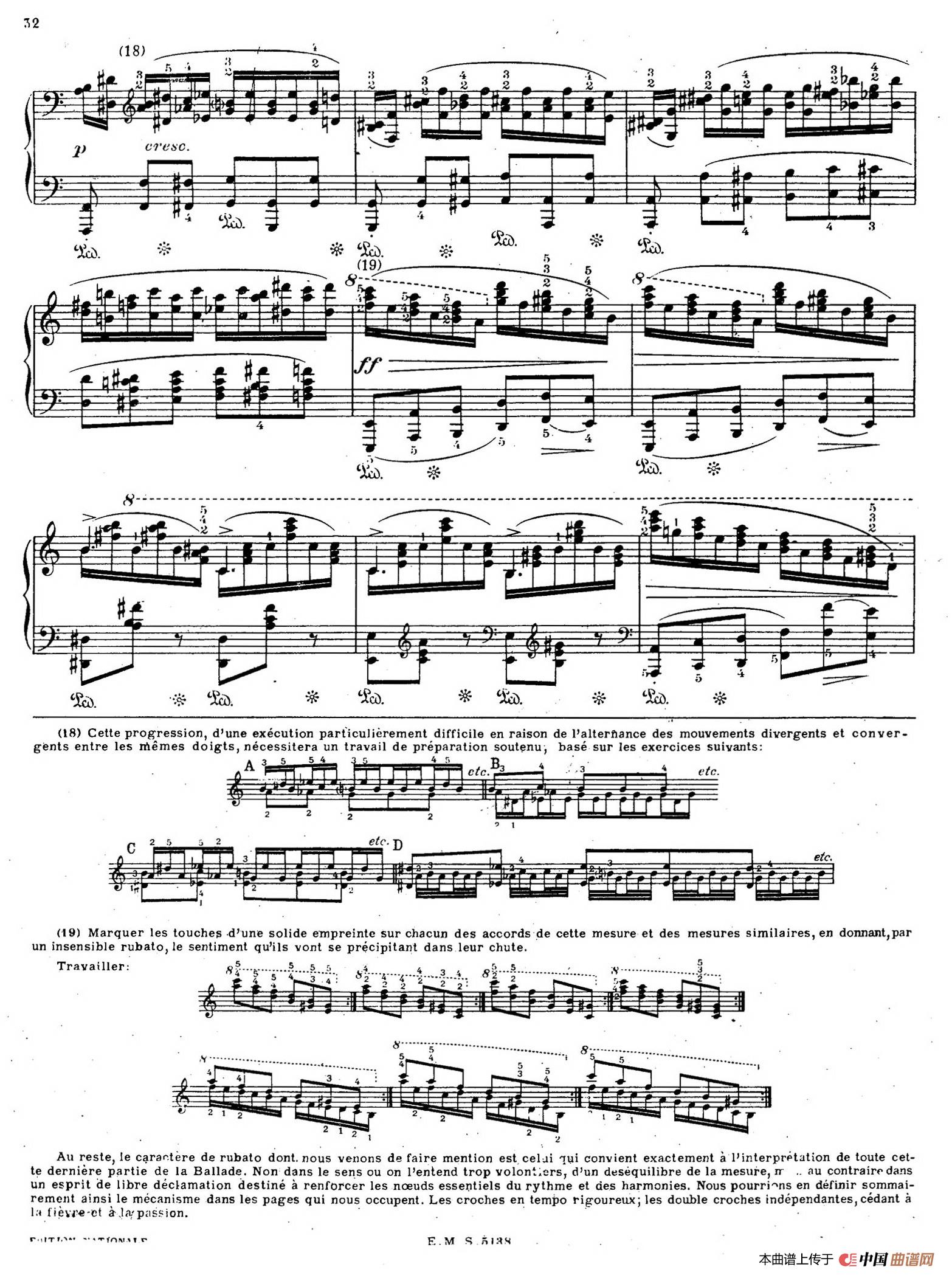 回到作品分析上,这首叙事曲采用奏鸣曲式主题对比的原则和回旋曲式的原则相结合的作法,这也是创作构思和音乐形象发展的线索所决定的。此曲具有鲜明的形象,开始是牧歌式的、幽静的音乐,有一支很纯朴甚至天真的从容不迫的旋律,此后充满了惊慌不安情绪的急板闯入,一阵狂风骤雨过后又出现了开始时的音乐,这里对前面主题进行紧缩,也不像第一次那样平静,时而哀诉,时而热情。随后,急板的不祥的音乐象狂暴的飓风一样突然袭来,长驱直入到同样不祥和急速的激动不安的部分,表现出不安情绪的增长和绝望。这悲剧性非常强烈的音乐骤然被一个强烈的不协和和弦所中断,转入寂静而充满了悲哀的尾声结束。这尾声很容易就被认出是变了形的第一段牧歌式的音乐。这简短的结束语好像是在哀悼死去的青年,或者缅怀古老的传说。