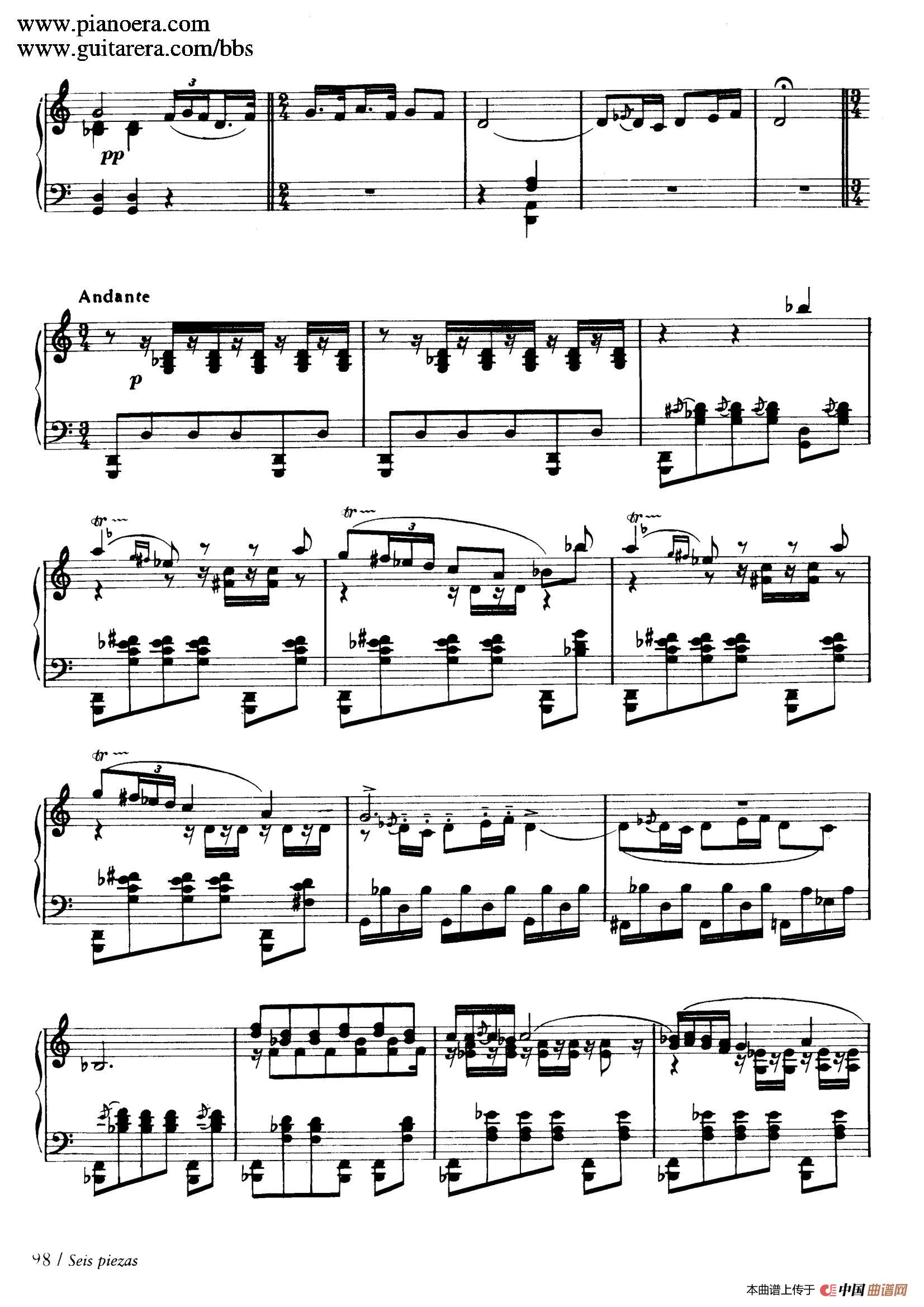 Six Pieces on Spanish Folksongs H.125(6首西班牙民谣小品·6. 赞巴舞曲 Zambra)