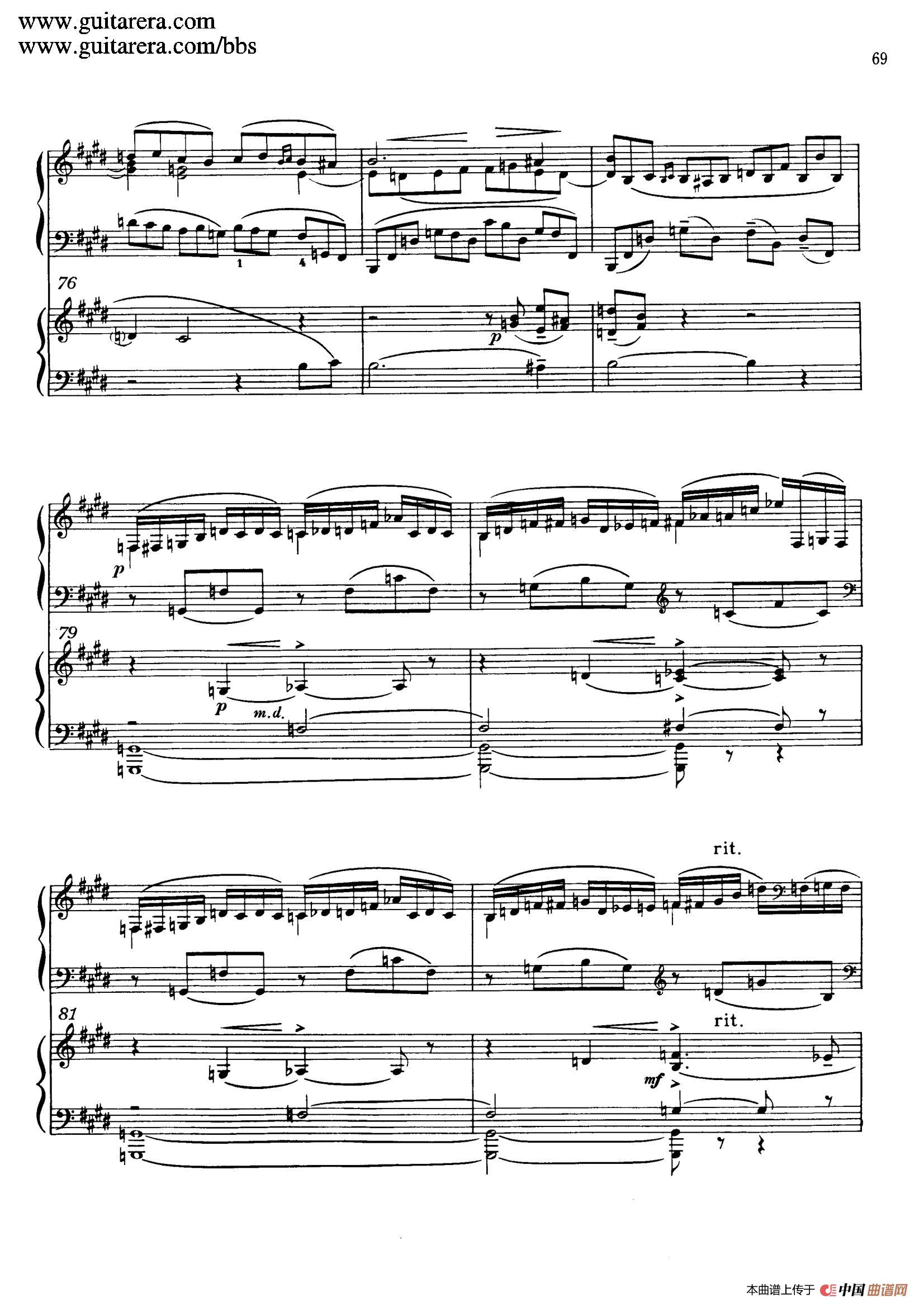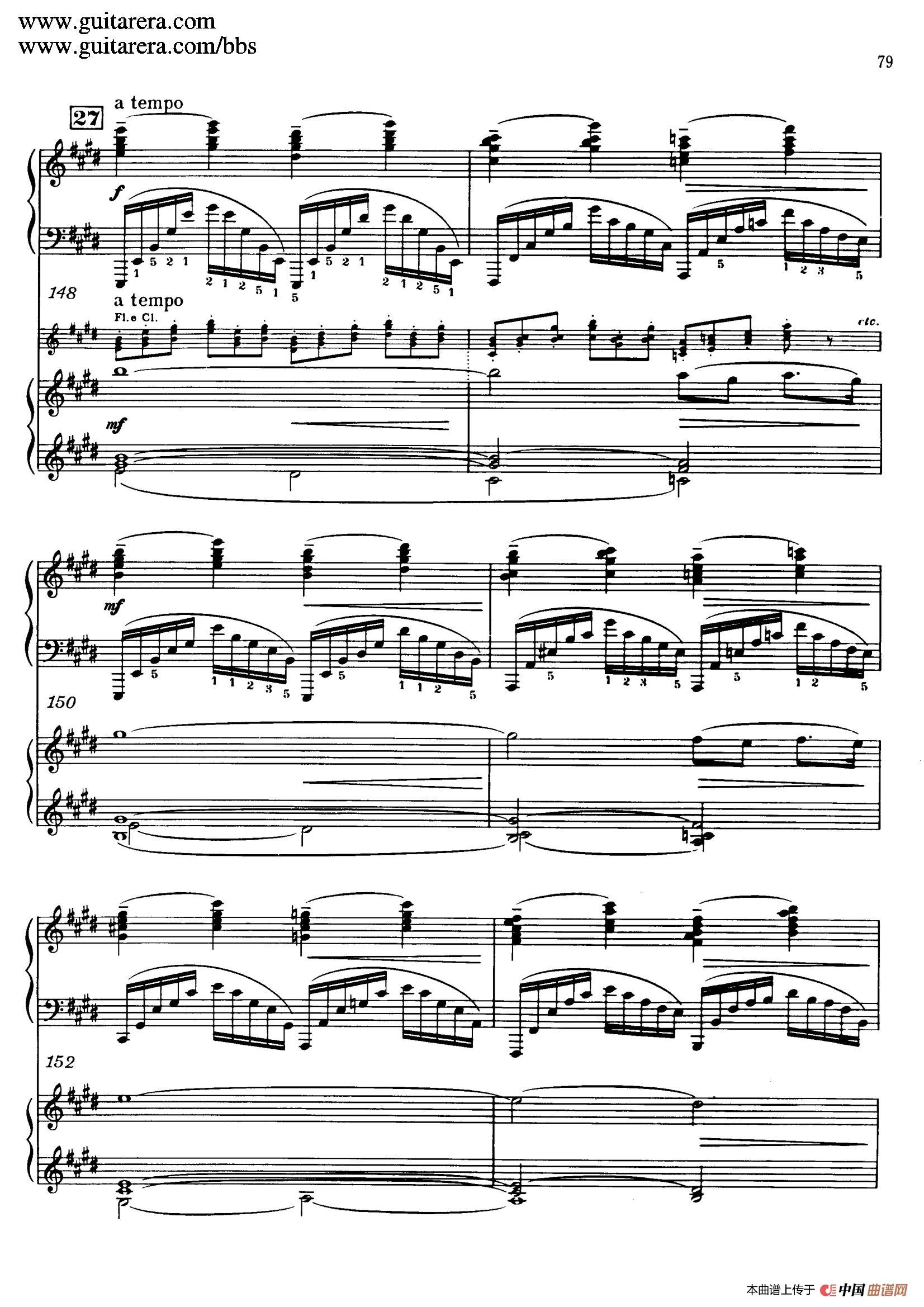 逐渐地音乐的性格发生了变化。明朗的幻想被热切、欢乐的激情所代替,在乐章中段,乐队只出现基本主题的一些回声,独奏钢琴的一些活跃的音型跃居第一位,像是首轻快诙谐的钢琴练习曲,然后就以光辉有力的华彩乐段作为结束。在乐章的最后一段基本主题的再现有所压缩,它又唤回了听者对那沉思的回忆,这种情绪即使在乐章的简短结尾中仍然没有减失。