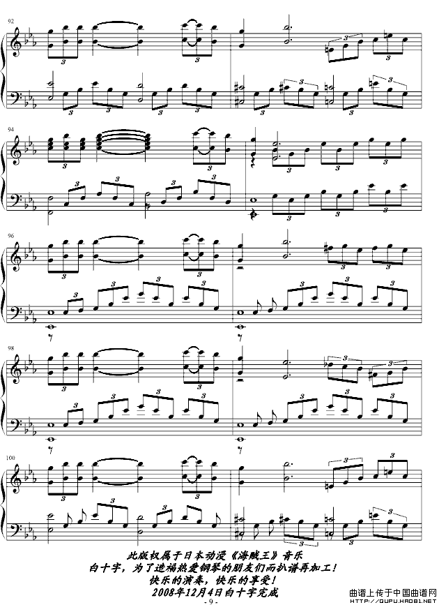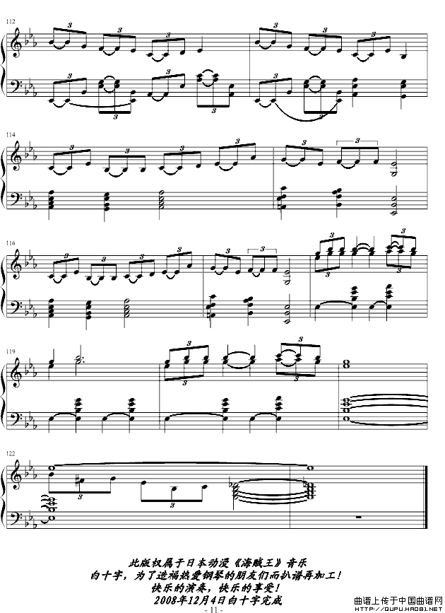 关于《白十字海贼王的自由之歌-宾克斯的美酒,都来干一杯吧!》曲谱的评论