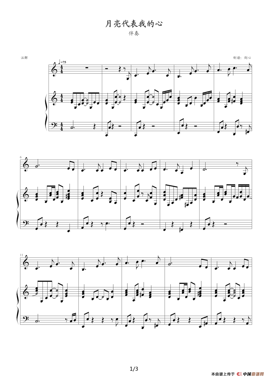 月亮代表我的心(弹唱谱、剑心制谱版)