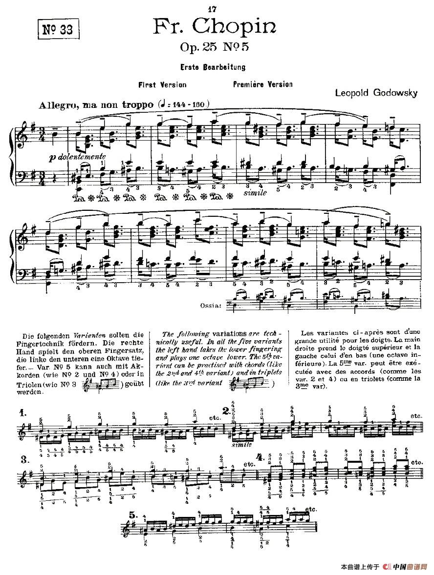 关于《肖邦《练习曲》Fr.Chopin Op.25 No5-1》曲谱的评论