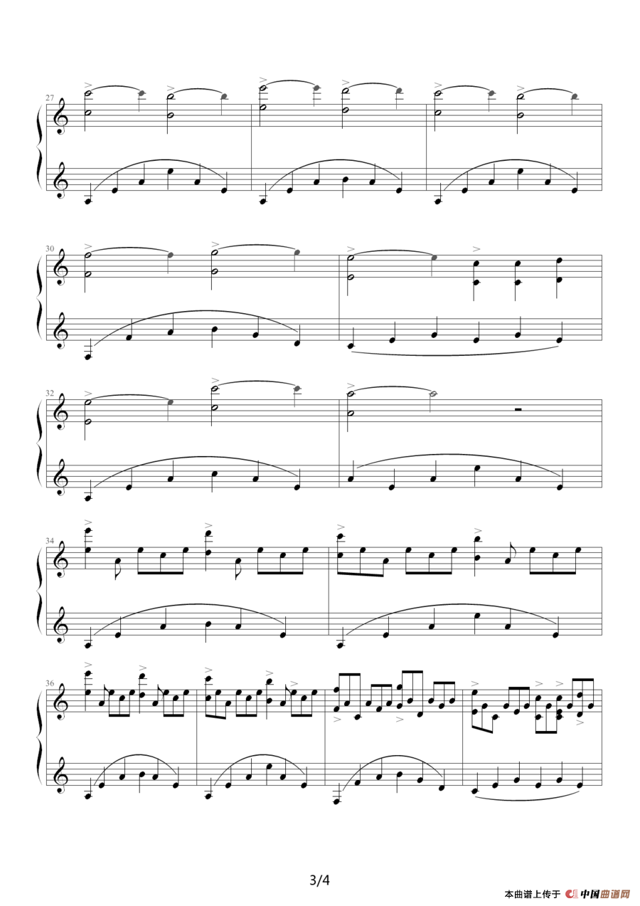 提示:在曲谱图片上单击右键,选择“图片另存为...”即可将曲谱保存到您的电脑中,打印时候可将图片插入到WORD中,调整合适大小打印即可。