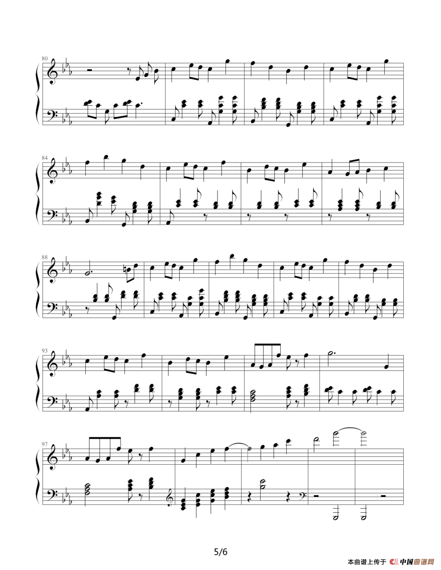 提示:在曲谱图片上单击右键,选择“图片另存为...”即可将曲谱保存到您的电脑中,打印时候可将图片插入到WORD中,调整合适大小打印即可。