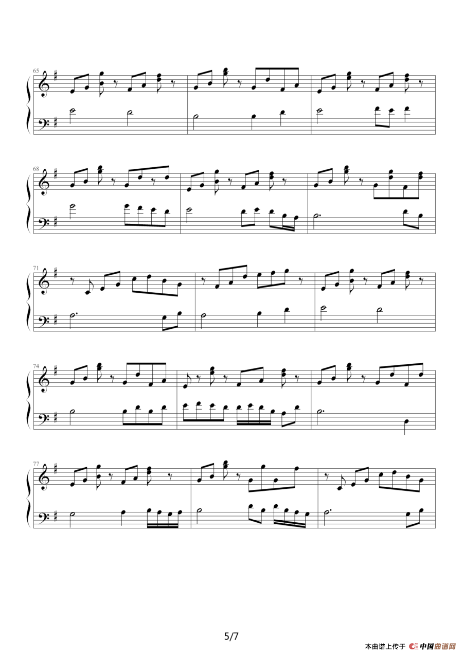 提示:在曲谱图片上单击右键,选择“图片另存为...”即可将曲谱保存到您的电脑中,打印时候可将图片插入到WORD中,调整合适大小打印即可。