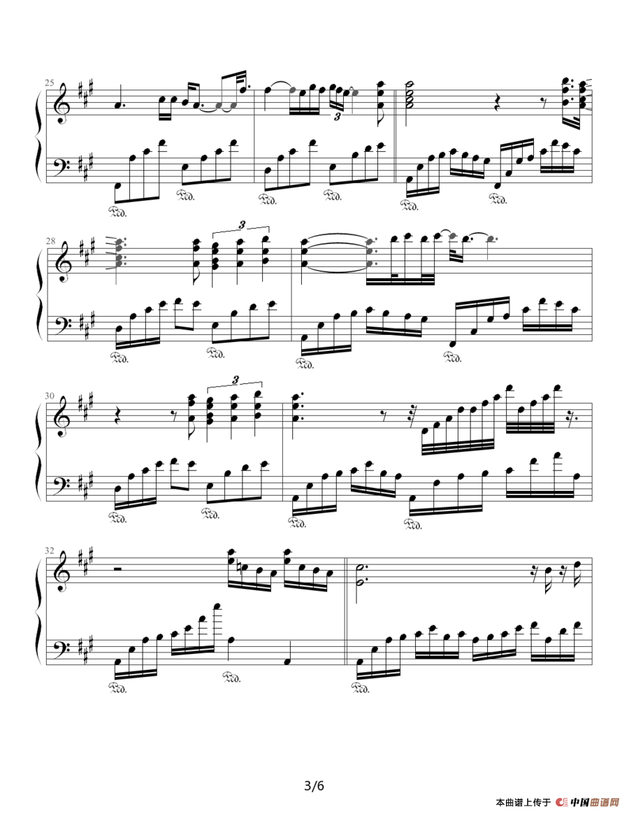 提示:在曲谱图片上单击右键,选择“图片另存为...”即可将曲谱保存到您的电脑中,打印时候可将图片插入到WORD中,调整合适大小打印即可。