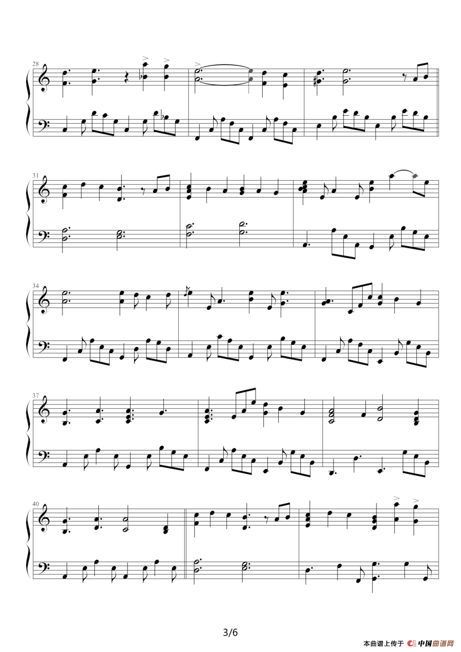 提示:在曲谱图片上单击右键,选择“图片另存为...”即可将曲谱保存到您的电脑中,打印时候可将图片插入到WORD中,调整合适大小打印即可。