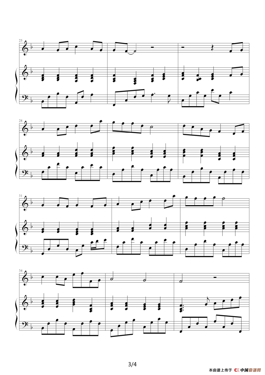 提示:在曲谱图片上单击右键,选择“图片另存为...”即可将曲谱保存到您的电脑中,打印时候可将图片插入到WORD中,调整合适大小打印即可。