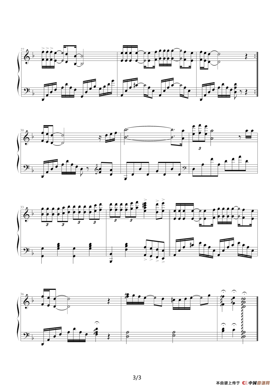 提示:在曲谱图片上单击右键,选择“图片另存为...”即可将曲谱保存到您的电脑中,打印时候可将图片插入到WORD中,调整合适大小打印即可。