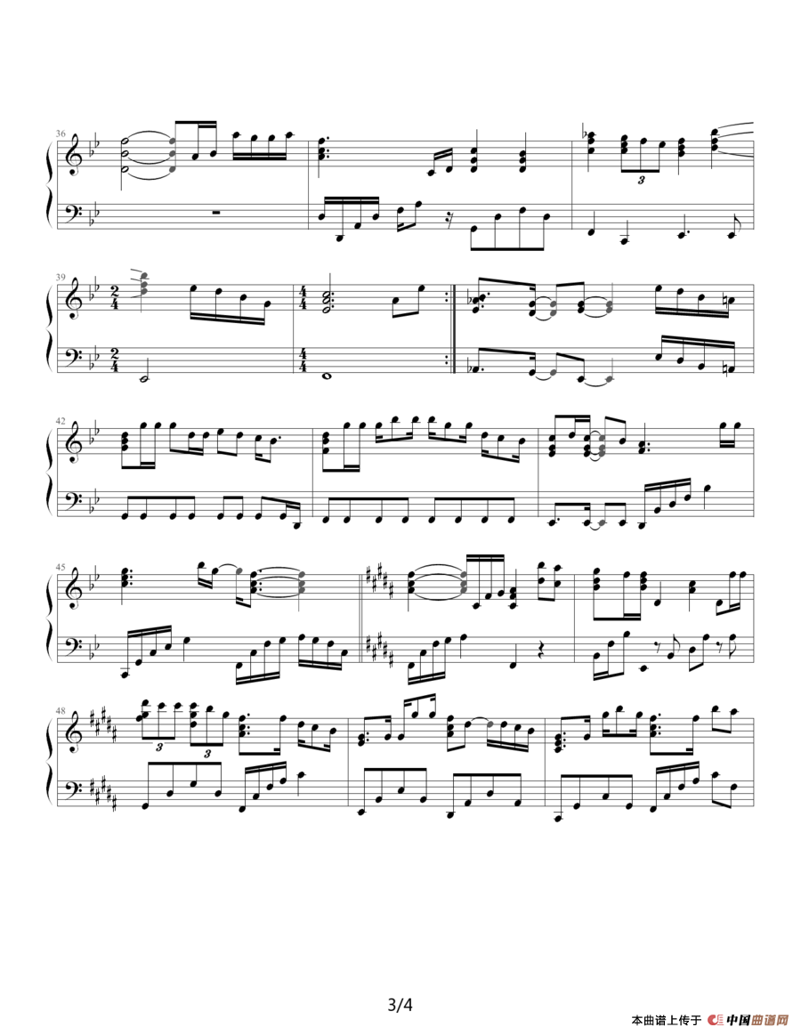 提示:在曲谱图片上单击右键,选择“图片另存为...”即可将曲谱保存到您的电脑中,打印时候可将图片插入到WORD中,调整合适大小打印即可。