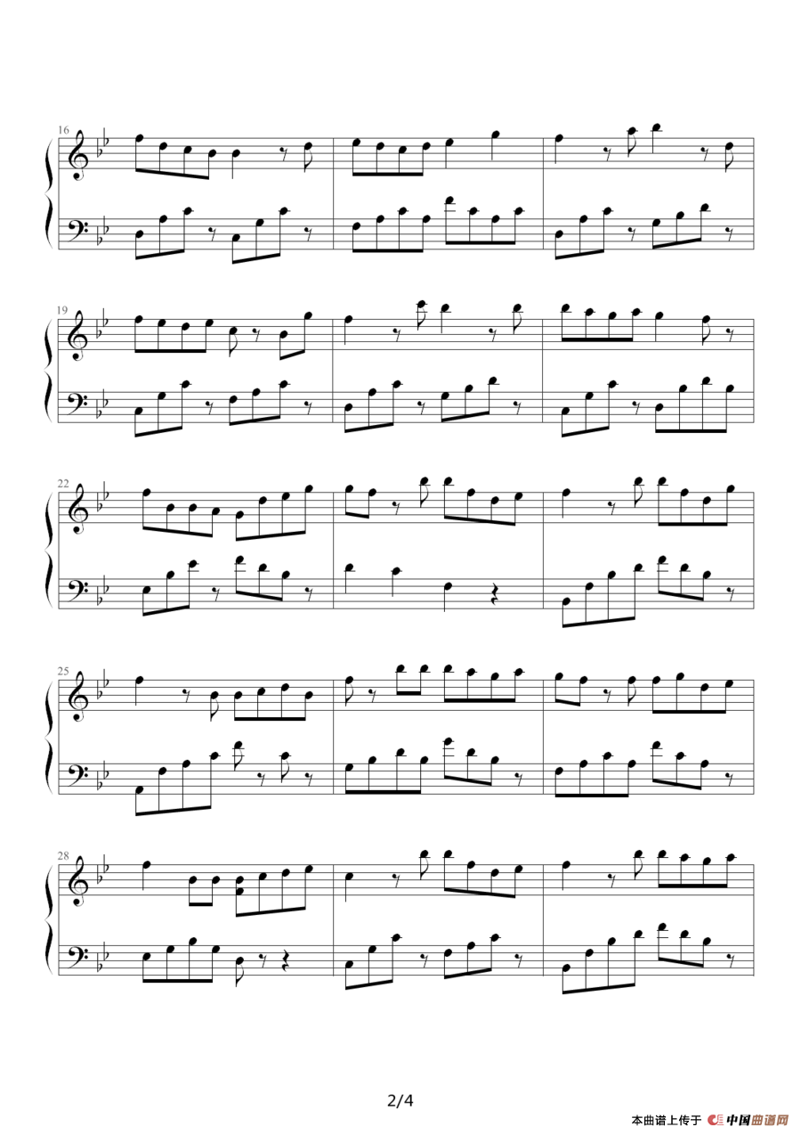 提示:在曲谱图片上单击右键,选择“图片另存为...”即可将曲谱保存到您的电脑中,打印时候可将图片插入到WORD中,调整合适大小打印即可。
