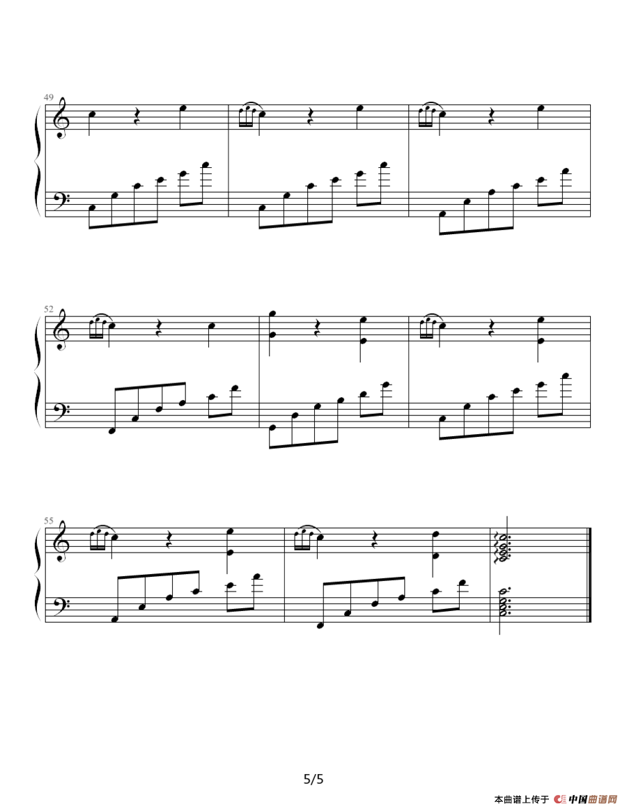提示:在曲谱图片上单击右键,选择“图片另存为...”即可将曲谱保存到您的电脑中,打印时候可将图片插入到WORD中,调整合适大小打印即可。