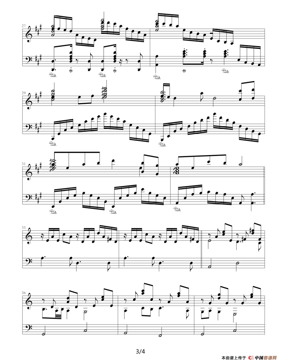 提示:在曲谱图片上单击右键,选择“图片另存为...”即可将曲谱保存到您的电脑中,打印时候可将图片插入到WORD中,调整合适大小打印即可。