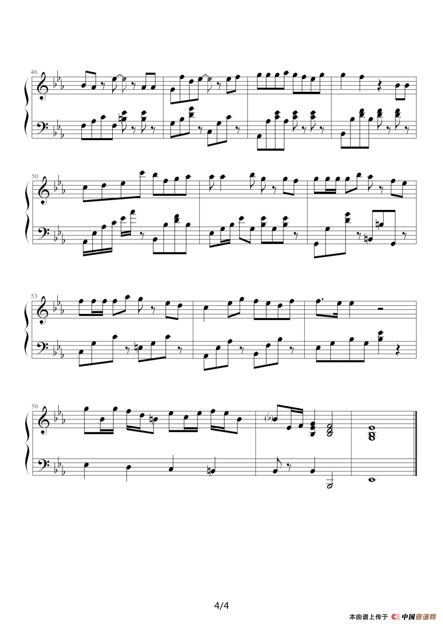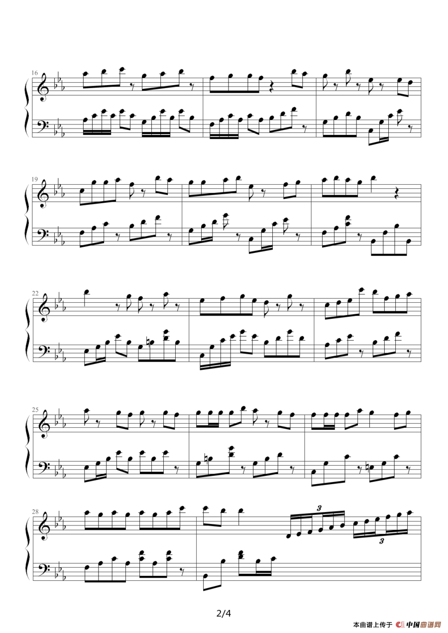 提示:在曲谱图片上单击右键,选择“图片另存为...”即可将曲谱保存到您的电脑中,打印时候可将图片插入到WORD中,调整合适大小打印即可。