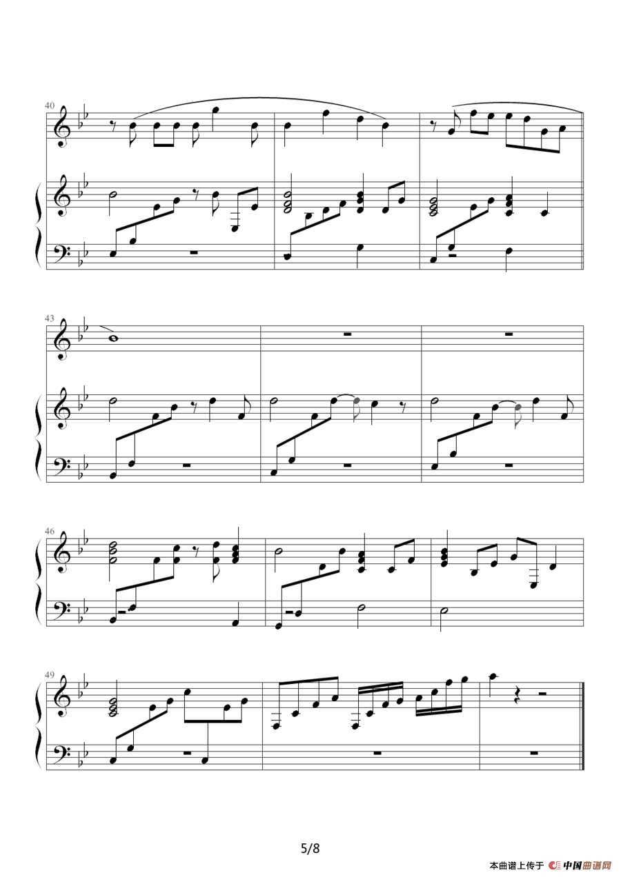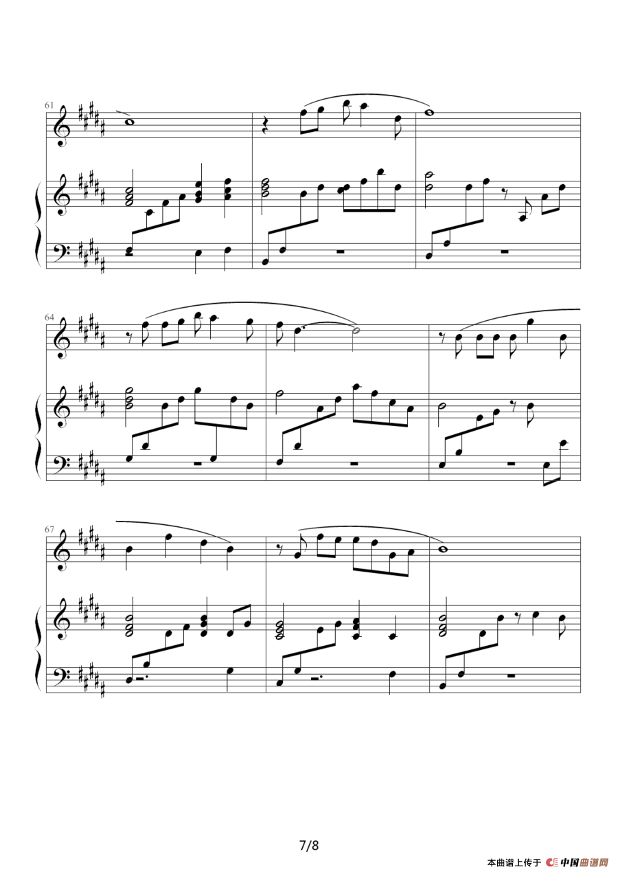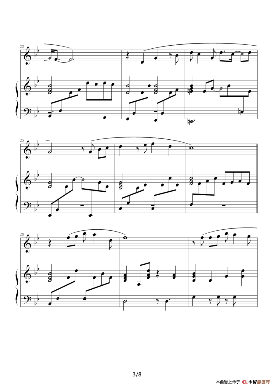 提示:在曲谱图片上单击右键,选择“图片另存为...”即可将曲谱保存到您的电脑中,打印时候可将图片插入到WORD中,调整合适大小打印即可。