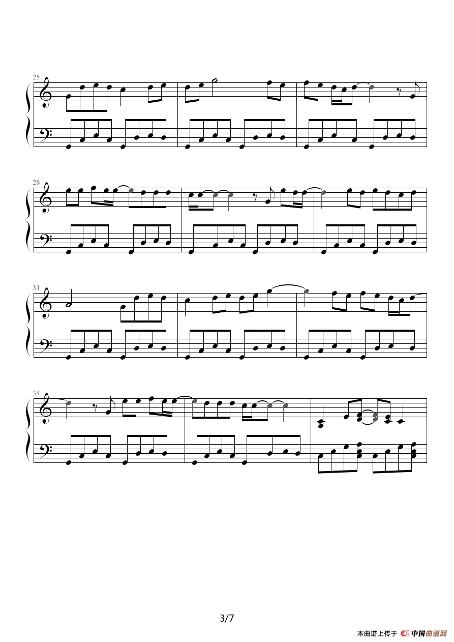 提示:在曲谱图片上单击右键,选择“图片另存为...”即可将曲谱保存到您的电脑中,打印时候可将图片插入到WORD中,调整合适大小打印即可。
