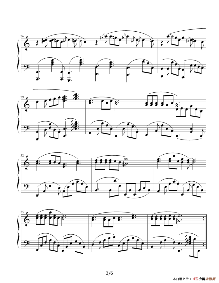 提示:在曲谱图片上单击右键,选择“图片另存为...”即可将曲谱保存到您的电脑中,打印时候可将图片插入到WORD中,调整合适大小打印即可。