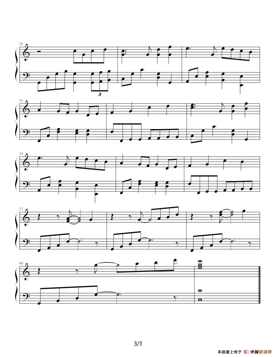 提示:在曲谱图片上单击右键,选择“图片另存为...”即可将曲谱保存到您的电脑中,打印时候可将图片插入到WORD中,调整合适大小打印即可。