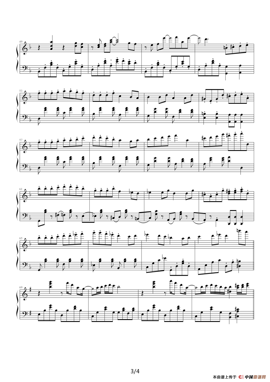 提示:在曲谱图片上单击右键,选择“图片另存为...”即可将曲谱保存到您的电脑中,打印时候可将图片插入到WORD中,调整合适大小打印即可。