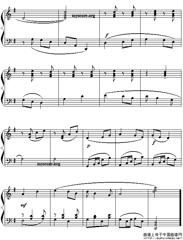 格式:五线谱 来源:《大众乐谱网》制谱上传 上传:秋叶起舞