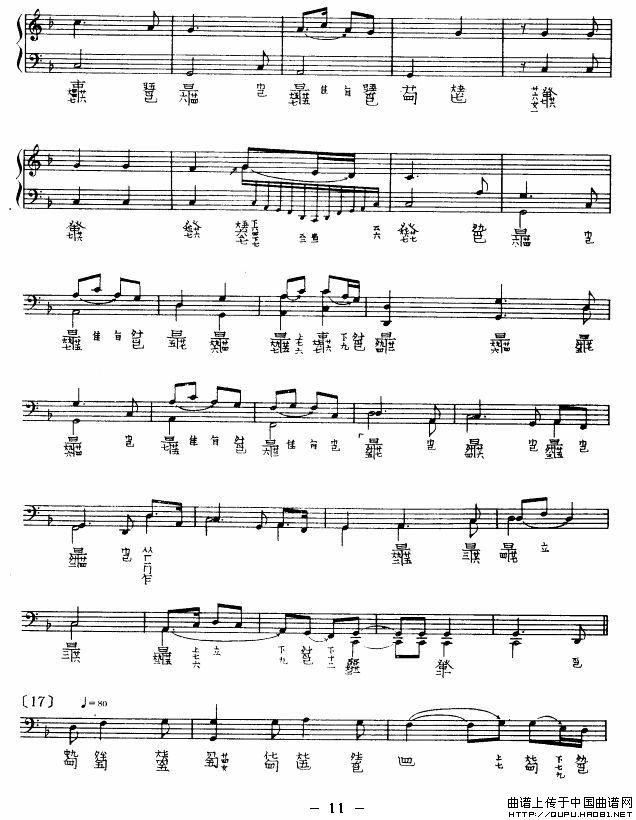 提示:在曲谱图片上单击右键,选择“图片另存为...”即可将曲谱保存到您的电脑中,打印时候可将图片插入到WORD中,调整合适大小打印即可。