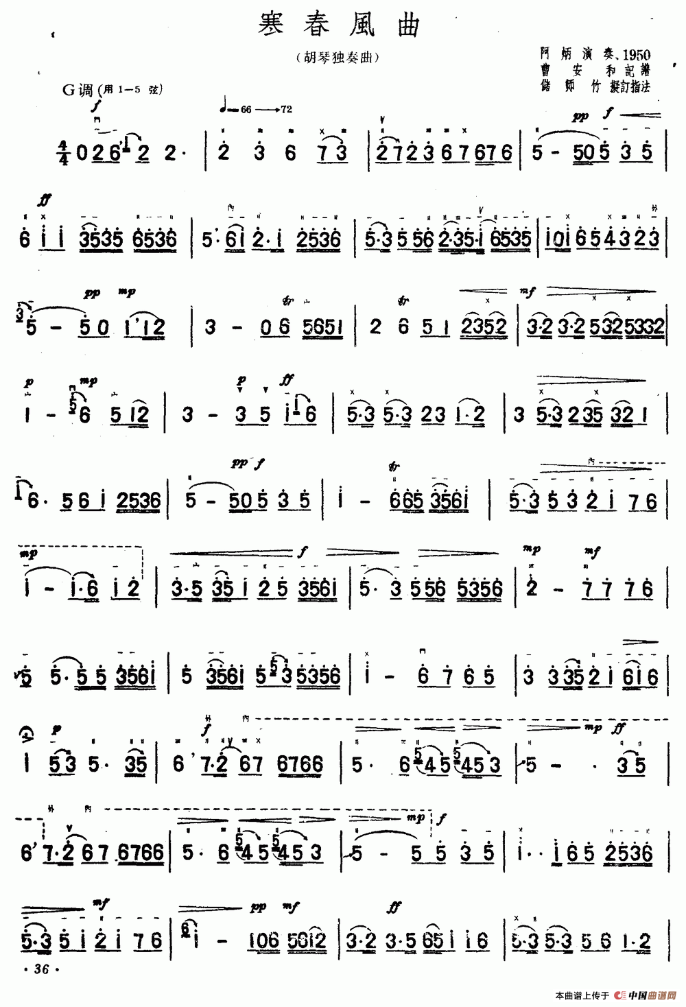 作曲:阿炳传谱、曹安和记谱 格式:简谱 来源:《中国曲谱网》 上传:秋叶起舞