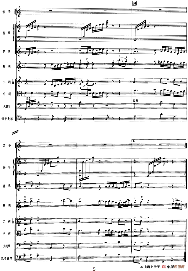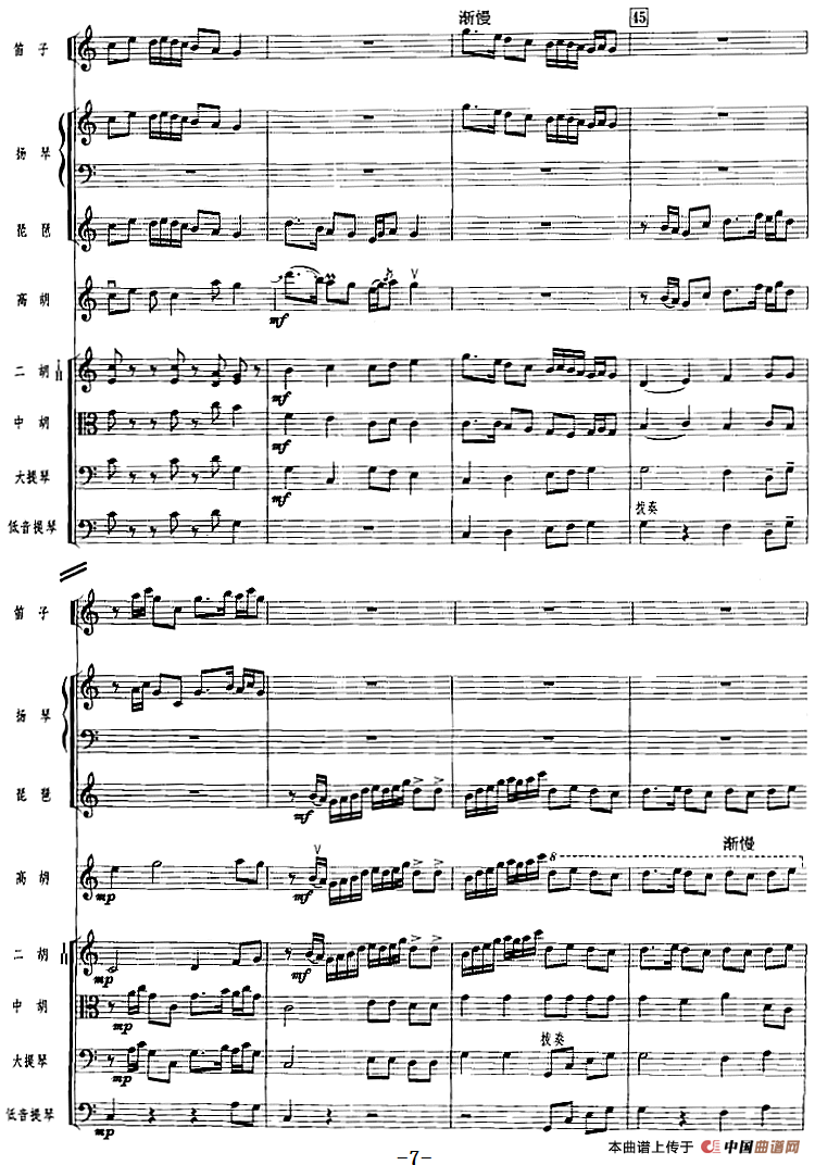 绿水长流稻飘香(广东音乐、高胡+乐队伴奏、五线谱版)