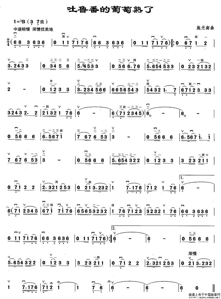 关于《吐鲁番的葡萄熟了》曲谱的评论