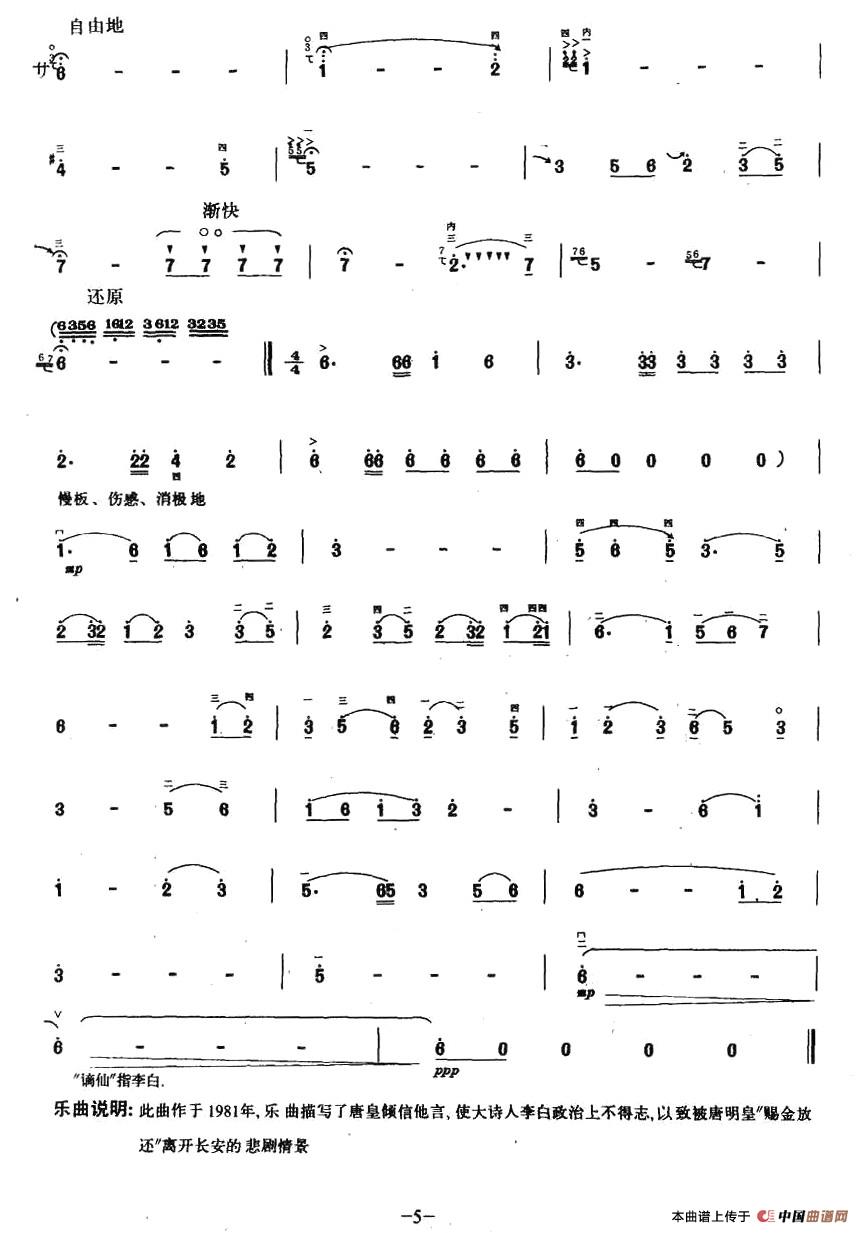 关于《谪仙怨》曲谱的评论