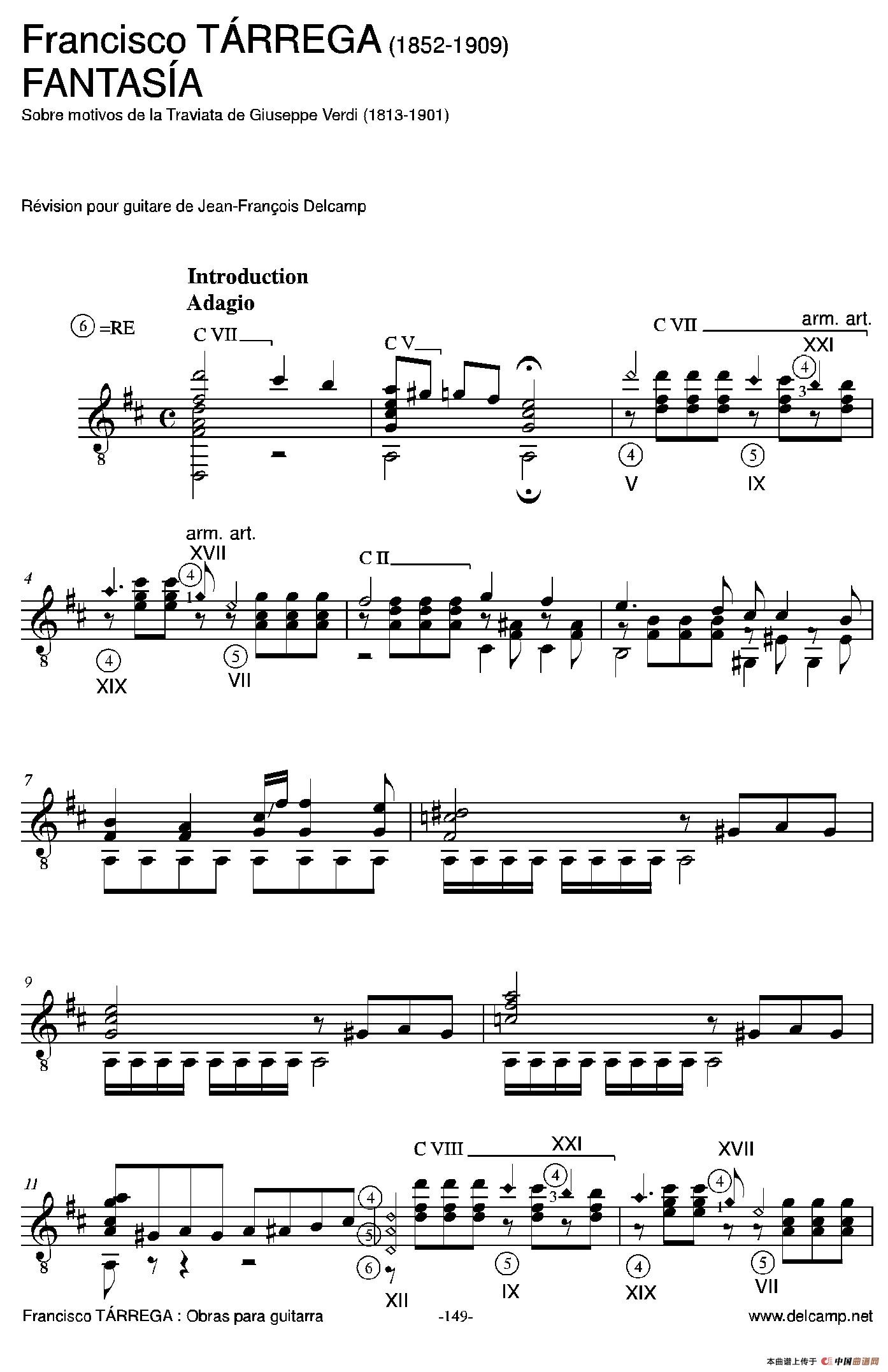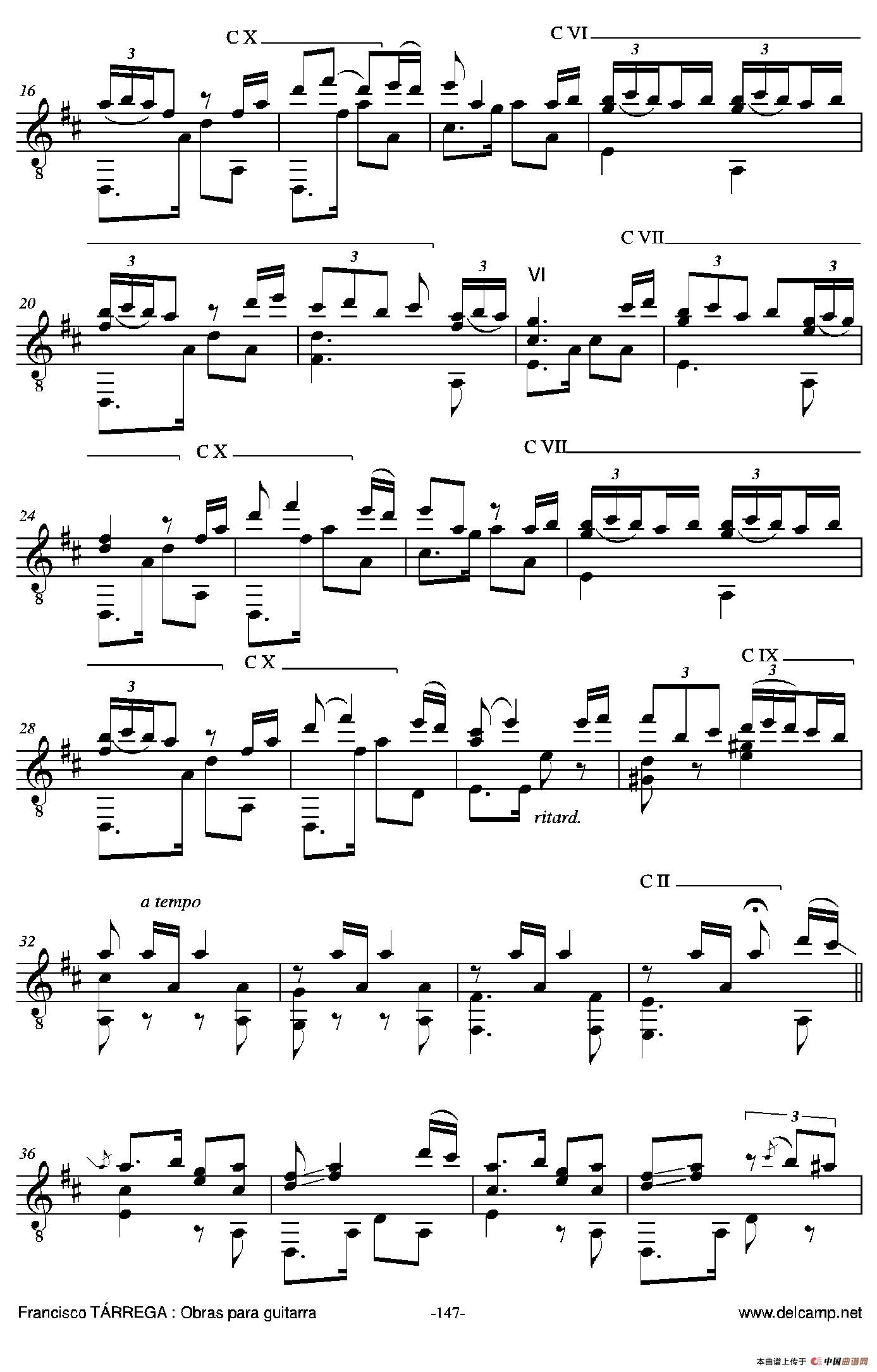 弗朗西斯科·塔雷加(1852~1909)Tárrega,Franciso,西班牙吉他演奏家、作曲家。塔雷加是第一位将其他乐器的作品改编为吉他演奏的音乐家。