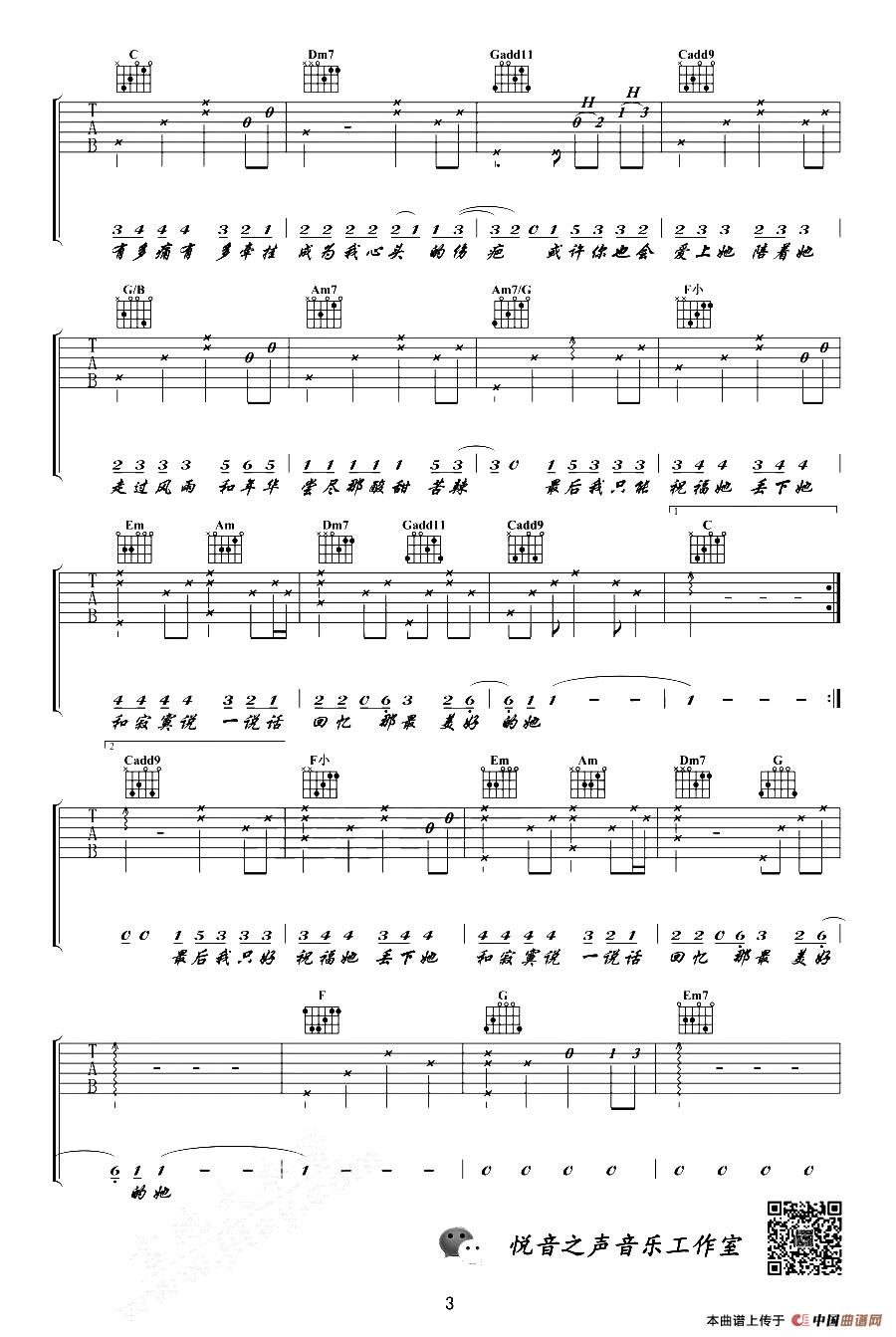 赵烁《忆她》吉他谱女生版,选用C调和弦指法编配。由赵烁原唱的一首当年红遍网络的歌曲,简单的旋律和歌词,却打动人心,郝浩瀚编配版本好弹好唱。有时候爱一首歌的理由就很简单,只因为他陪我走过一段特别的时光,每次听到还是觉得安心,不管怎样的绝望崩溃好像都可以暂时被放下,时间是很神奇的东西,它不治愈,它只是让你习惯。