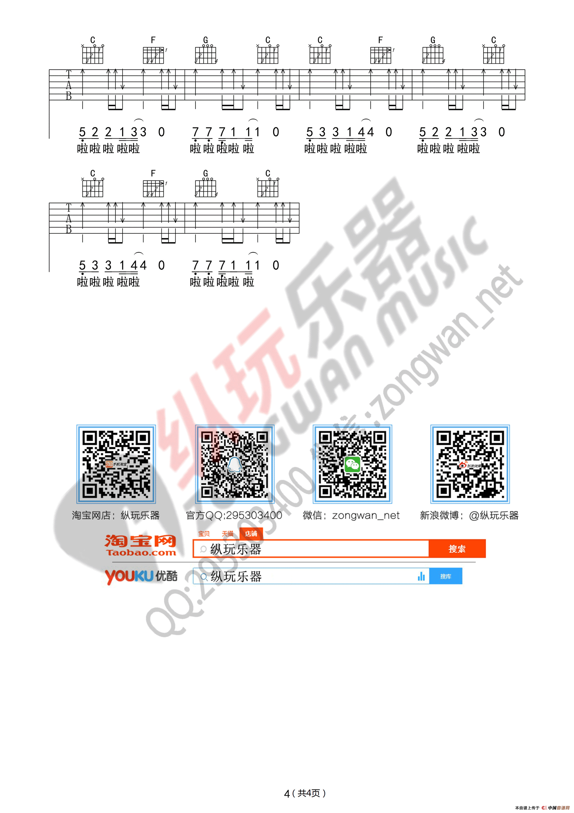 提示:在曲谱图片上单击右键,选择“图片另存为...”即可将曲谱保存到您的电脑中,打印时候可将图片插入到WORD中,调整合适大小打印即可。