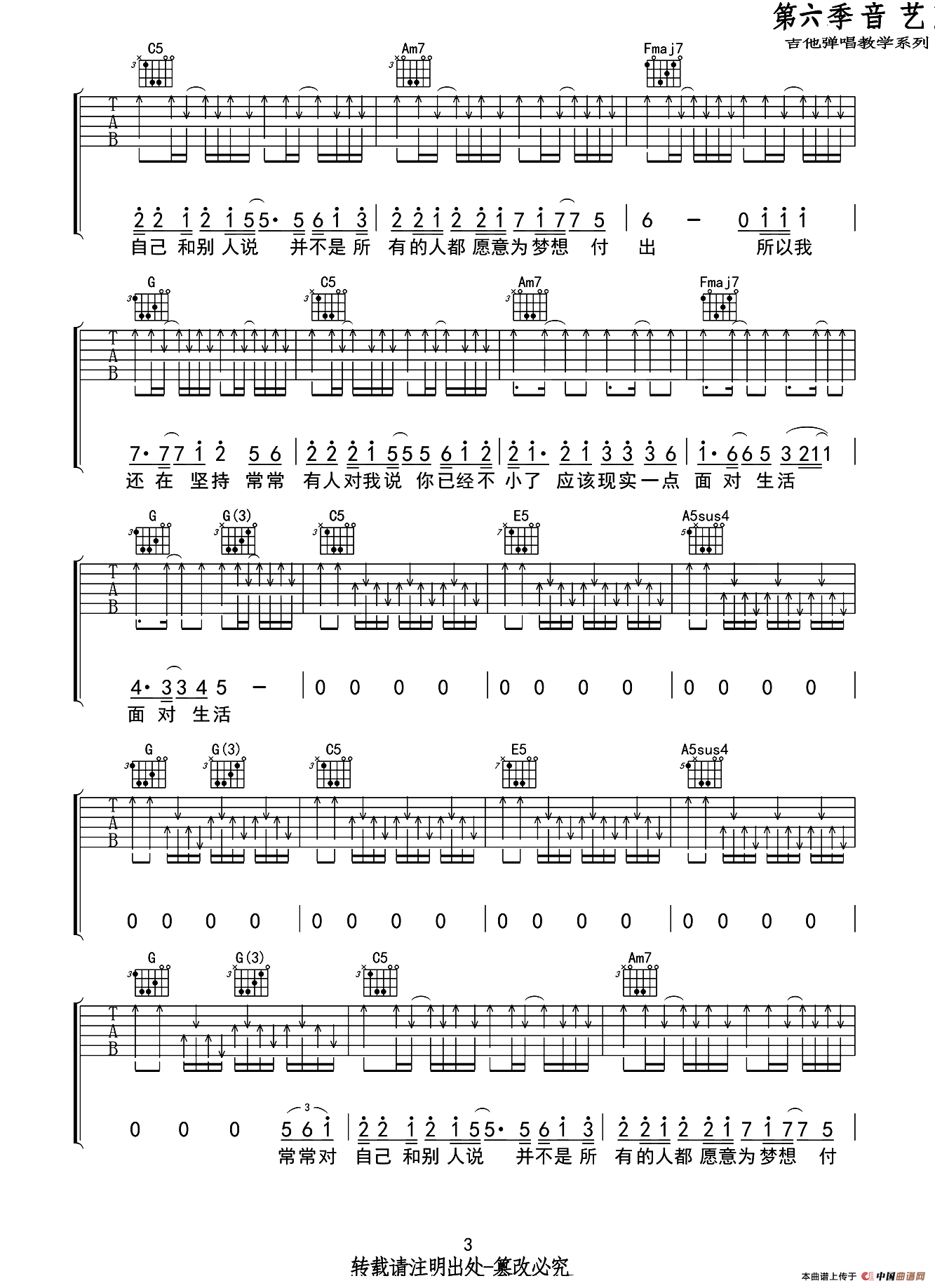 C调高清弹唱谱