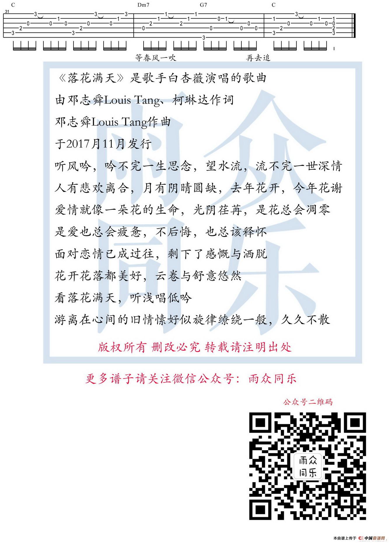 关于《落花满天》曲谱的评论