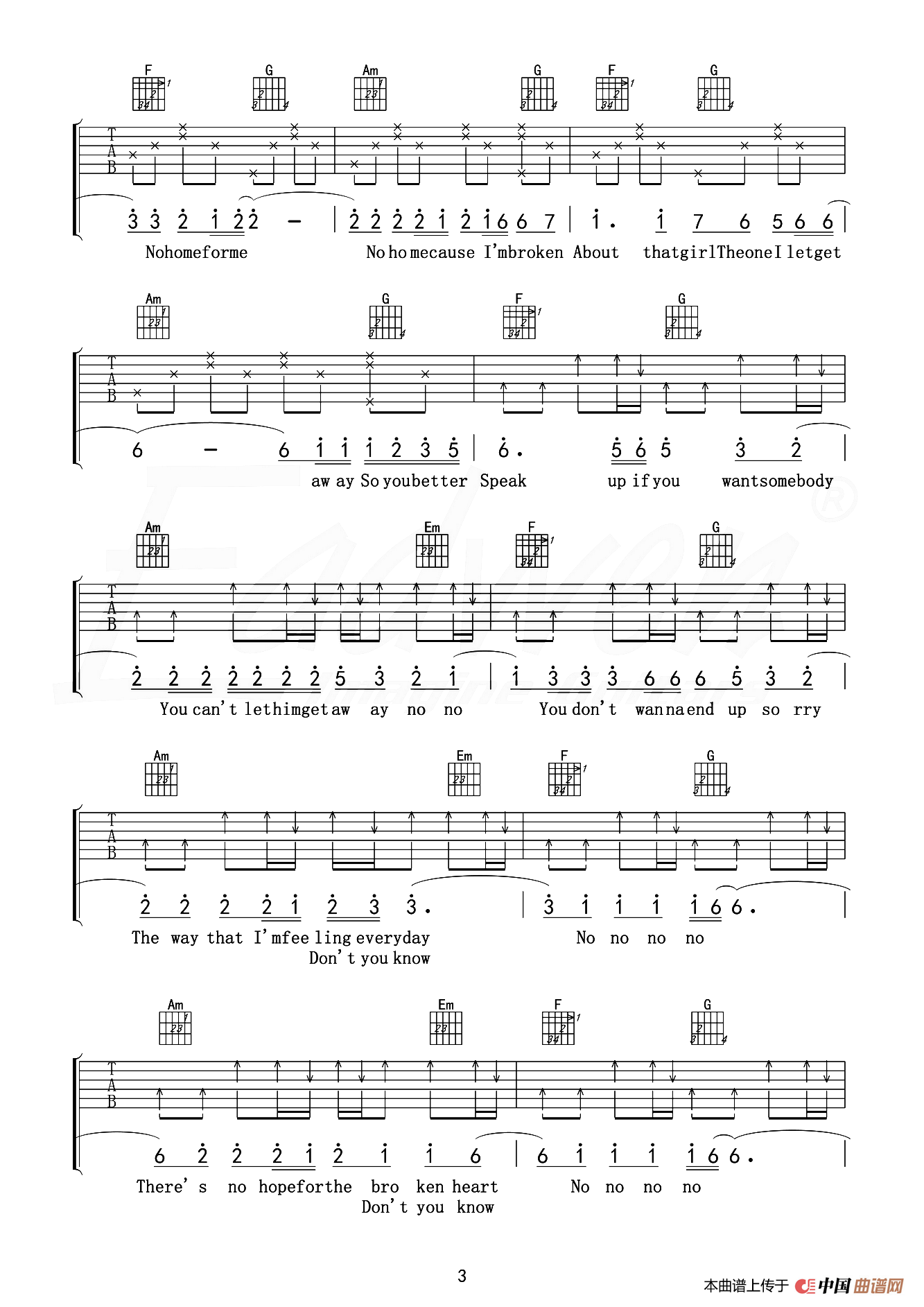 抖音 olly mars《That girl》吉他谱 C调原版编配